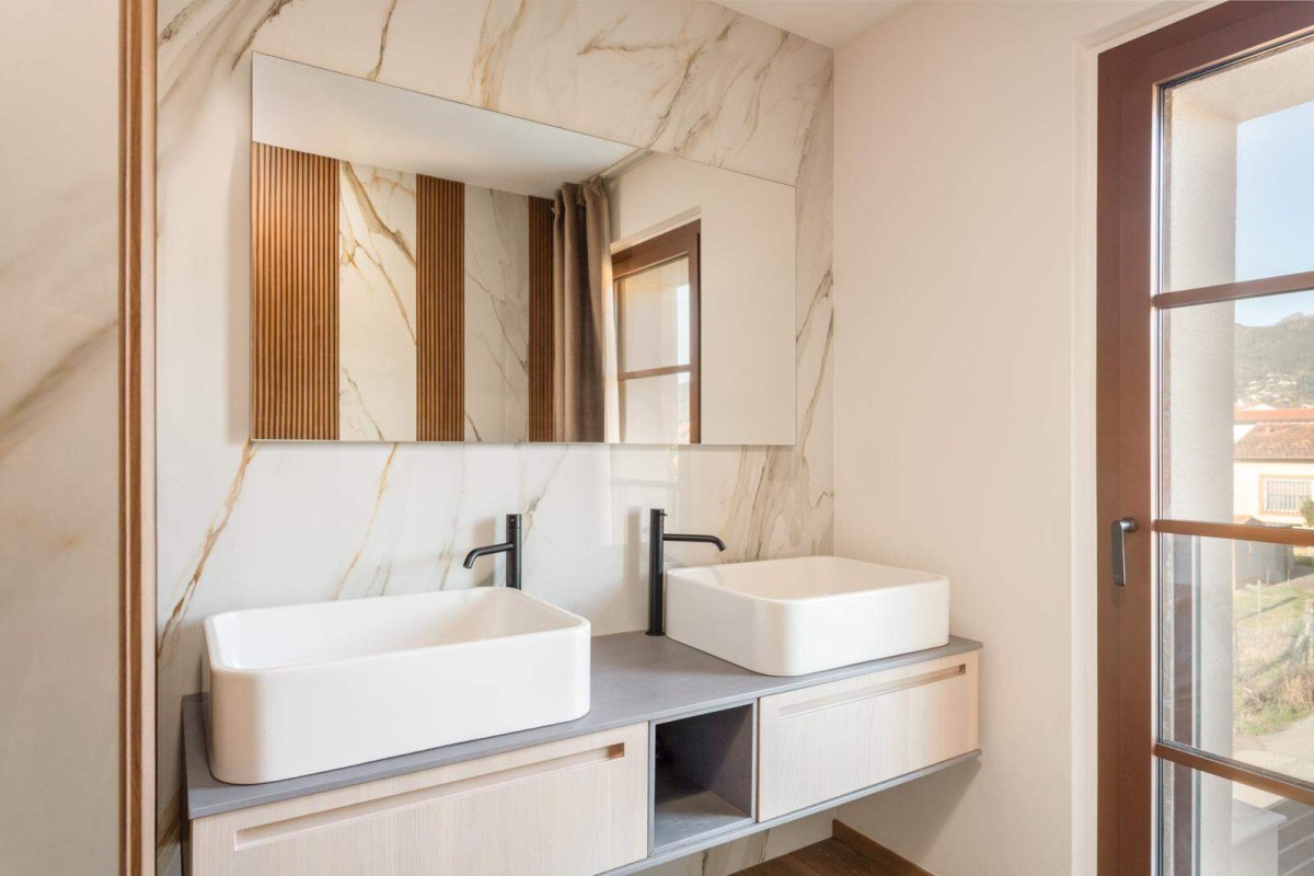 Al primo piano, due camere doppie, un bagno con doccia, una camera matrimoniale con ampia vasca