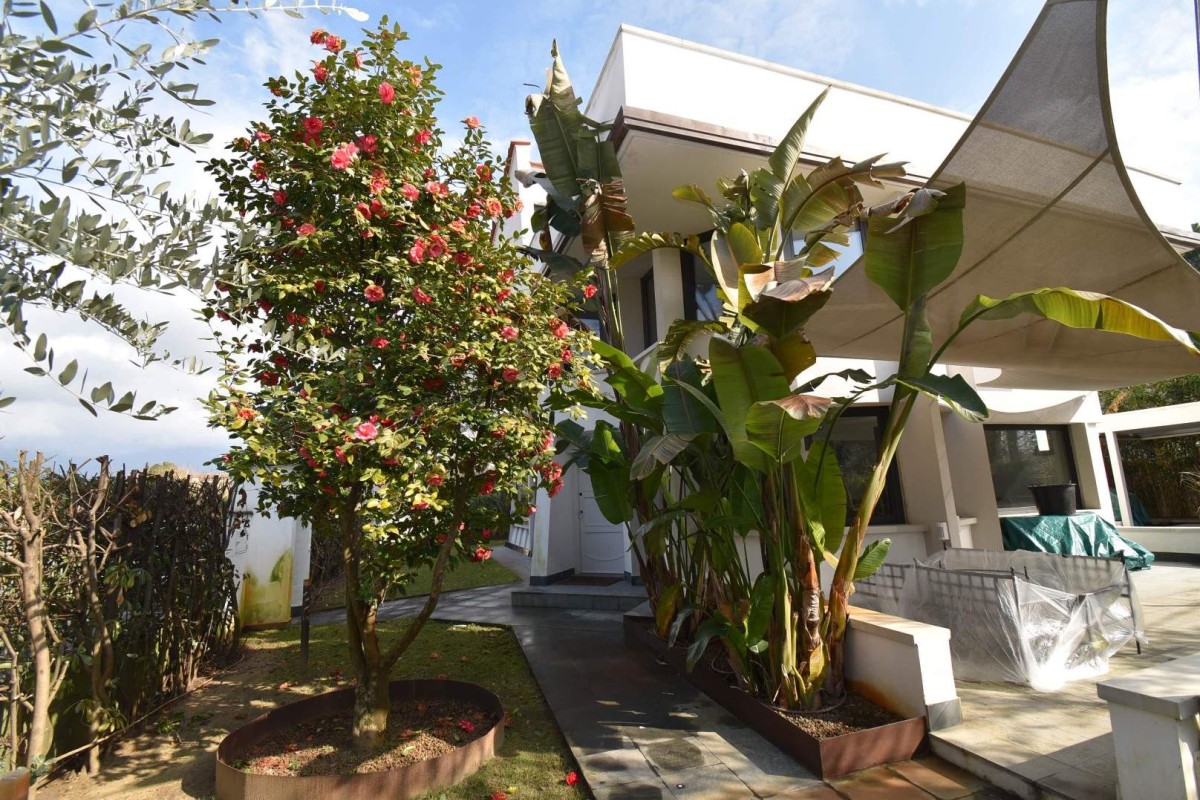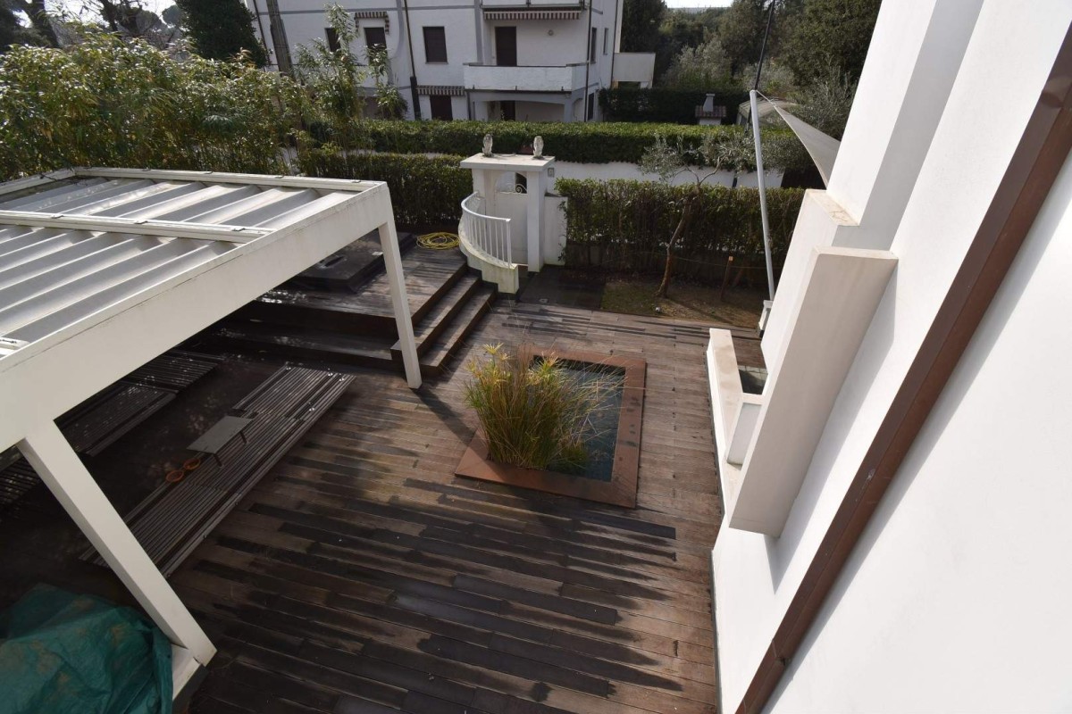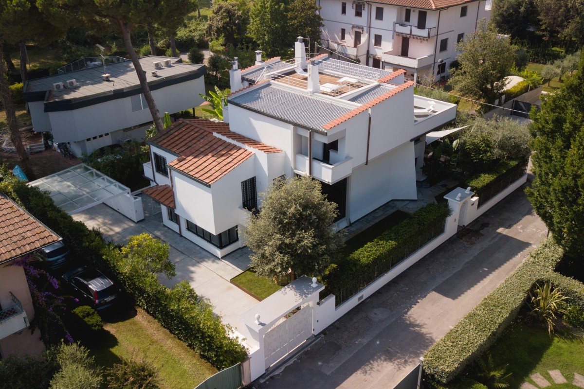 A pochi passi dal mare e dalla passeggiata di Lido di Camaiore, comoda rispetto ai servizi e immersa nella tranquillità di una zona residenziale, vendesi prestigiosa villa singola sviluppata su tre livelli fuori terra. Internamente così composta: a piano terra ampio soggiorno con camino ad aria e cucina-zona pranzo in open space, l'ambiente si presenta molto luminoso grazie alle numerose porte finestre che affacciano sul giardino esterno, una prima camera al piano, bagno di servizio e vano ripostiglio. Al piano primo altra piacevole zona living con camino, due camere matrimoniali e due bagni a servizio della zona notte. Al secondo ed ultimo piano, ampia suite dotata anch'essa di camino, stanza armadi, bagno privato con rivestimenti di ottima qualità quali marmi pregiati e la sauna al suo interno. Da qui l'accesso al solarium esterno vivibile. L'immobile è corredato dal giardino di proprietà esclusiva sui quattro lati, piscina idromassaggio con pergotenda e zona pranzabile esterna, l'ingresso pedonale doppio e il carrabile con posti auto coperti interni, impianto allarme, aria condizionata. Ideale come appoggio estivo.