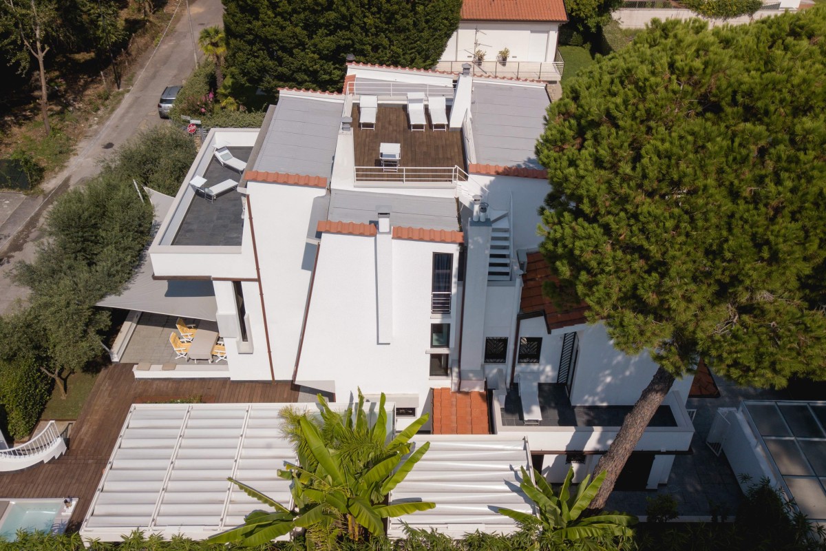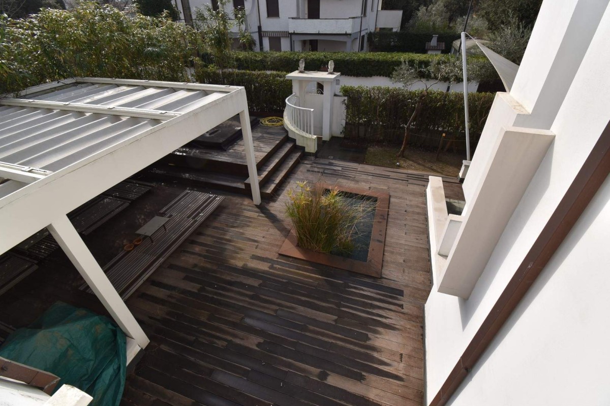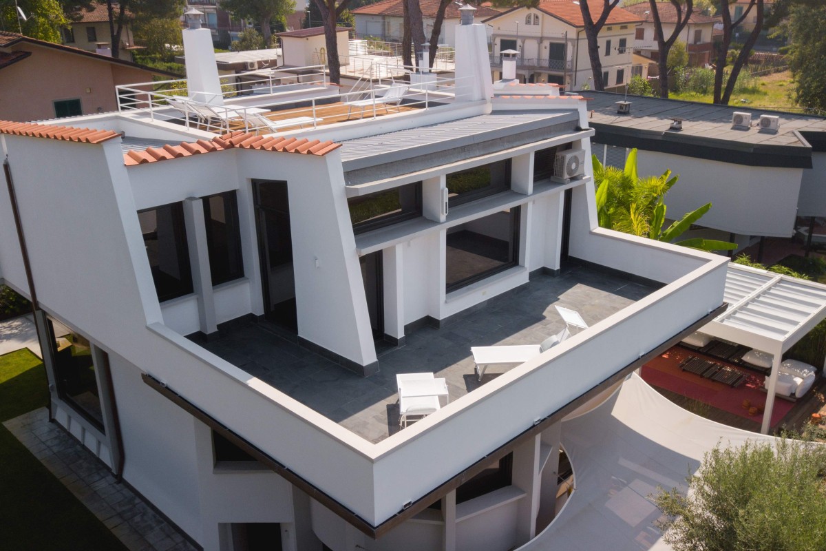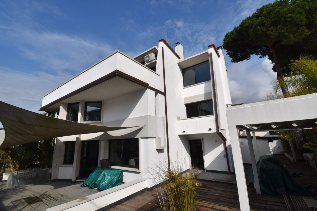 A pochi passi dal mare e dalla passeggiata di Lido di Camaiore, comoda rispetto ai servizi e immersa nella tranquillità di una zona residenziale, vendesi prestigiosa villa singola sviluppata su tre livelli fuori terra. Internamente così composta: a piano terra ampio soggiorno con camino ad aria e cucina-zona pranzo in open space, l'ambiente si presenta molto luminoso grazie alle numerose porte finestre che affacciano sul giardino esterno, una prima camera al piano, bagno di servizio e vano ripostiglio. Al piano primo altra piacevole zona living con camino, due camere matrimoniali e due bagni a servizio della zona notte. Al secondo ed ultimo piano, ampia suite dotata anch'essa di camino, stanza armadi, bagno privato con rivestimenti di ottima qualità quali marmi pregiati e la sauna al suo interno. Da qui l'accesso al solarium esterno vivibile. L'immobile è corredato dal giardino di proprietà esclusiva sui quattro lati, piscina idromassaggio con pergotenda e zona pranzabile esterna, l'ingresso pedonale doppio e il carrabile con posti auto coperti interni, impianto allarme, aria condizionata. Ideale come appoggio estivo.