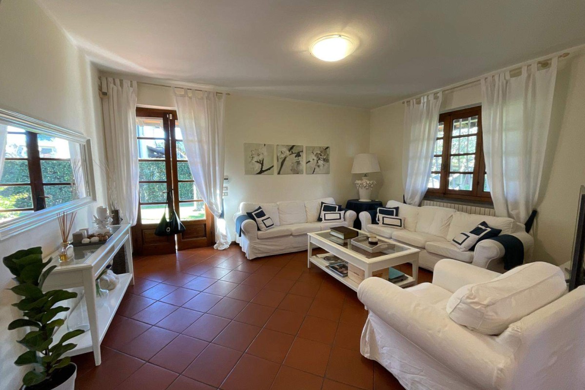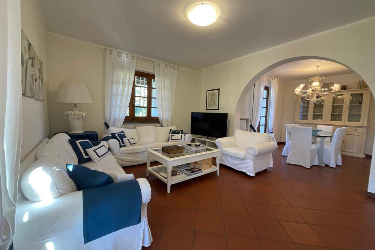 Forte dei marmi:in splendida zona, residenziale e tranquilla, a pochi minuti dal centro di forte dei marmi e le sue spiagge, vendesi villetta in bifamiliare anni 70, in stato abitabile, disposta su due livelli fuori terra e libera su tre lati. L'immobile si compone internamente al pian terreno da ingresso, soggiorno e zona pranzo, cucina abitabile con uscita sul retro in cui si trova un piccolo ripostiglio esterno ad uso lavanderia, bagno di servizio, camera con vano armadi, stanza di passaggio da destinare. Al piano superiore tre camere, ognuna dotata di bagno en suite oltre balcone. Corre. . .