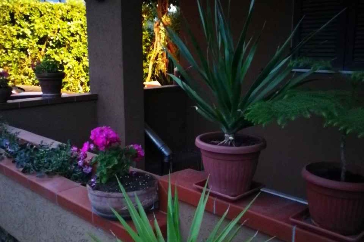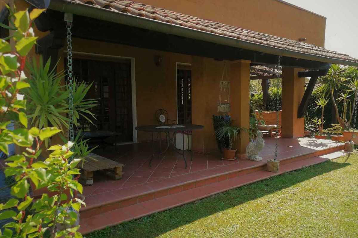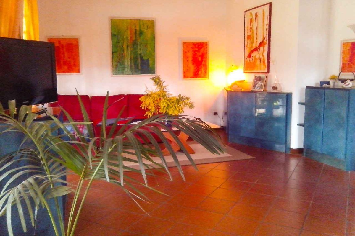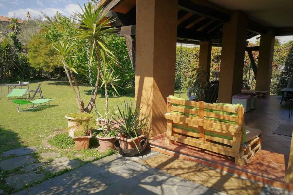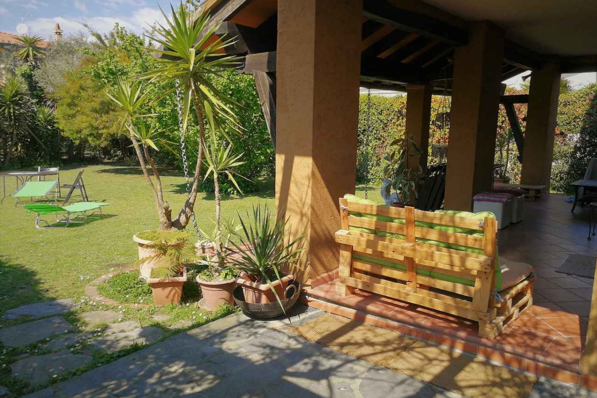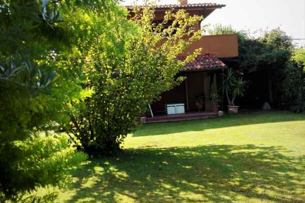 La villa si divide in tre appartamenti con entrata indipendente, circondati da un giardino fiorito e piante ad alto fusto.
