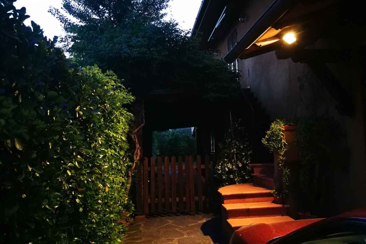 Separati dal corpo centrale troviamo la cucina, antibagno, bagno e stanza armadi.Intorno alla villa il giardino ospita la lavanderia e la legnaia, mentre nella parte est troviamo il vano lavanderia.
