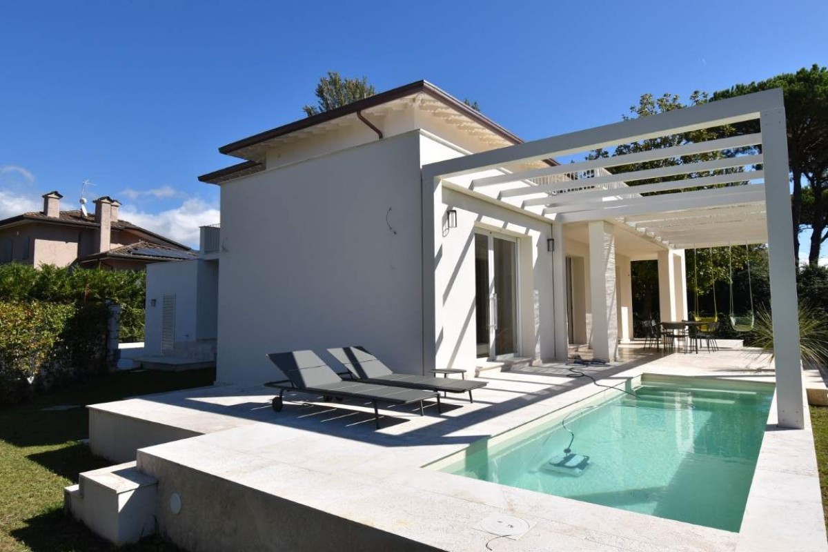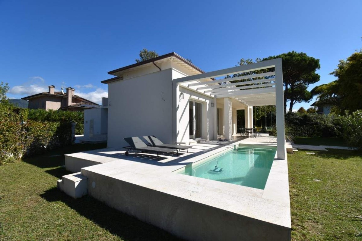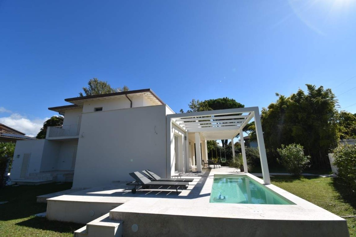 Inserita in contesto residenziale e tranquillo, nella splendida località balneare di Forte dei Marmi, proponiamo in vendita villa singola su lotto di circa mille metri, completamente ristrutturata e pronta da vivere. Internamente composta da ampia zona living con cucina a vista, la zona è illuminata dalle porte finestre che affacciano sul porticato vivibile con vista sulla piscina, camera matrimoniale con bagno en suite, vano lavanderia e bagno ospiti al piano terra. Al piano intermedio troviamo un’altra camera matrimoniale, anch’essa dotata di bagno privato. Piano primo ulteriore tre camere matrimoniali, ognuna con bagno e terrazzo. Correda la proprietà il giardino sui quattro lati dell’immobile, l’ingresso pedonale e carrabile con posti auto interni, la piscina, il porticato.