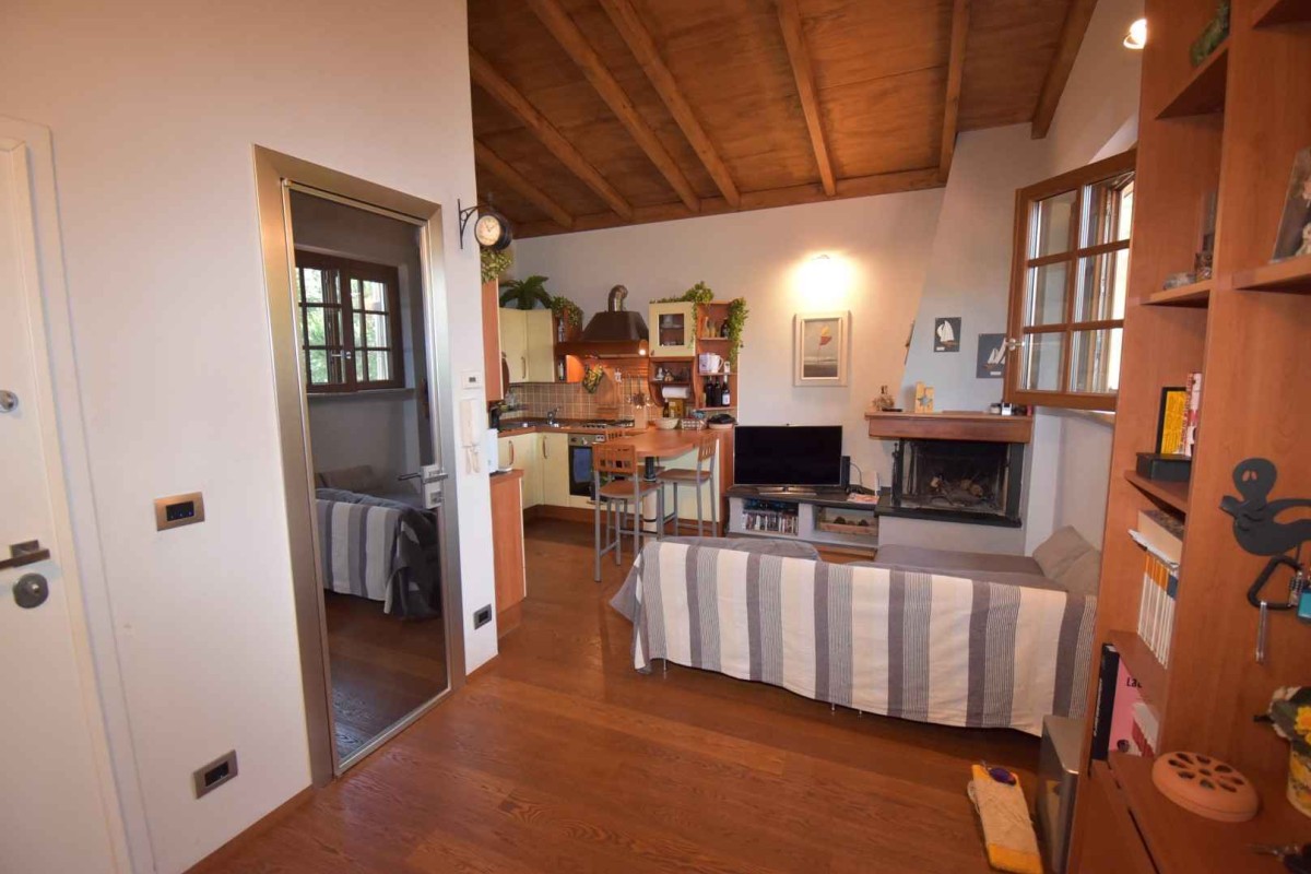 Si presenta in ottime condizioni e da subito abitabile. A dare carattere all'immobile l'ottima scelta di materiali di qualità quali parquet Fiemme posato con foglio di sughero, le travi a vista in legno, infissi di ultima generazione con triplo vetro e l'aria condizionata in ogni stanza.