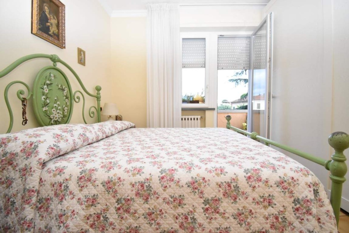 Ai confini del centro di Pietrasanta, raggiungibile comodamente a piedi e, a pochi passi da tutti i servizi quotidiani, proponiamo in vendita appartamento da subito abitabile, in ottime condizioni, e posto al piano secondo di più ampia palazzina condominiale, signorile e ottimamente mantenuta. Internamente si compone da: ingresso, cucina semi abitabile con uscita su balcone esterno, soggiorno e disimpegno sulla zona notte, qua troviamo una camera matrimoniale, una camera media ed una singola, tutte con uscita su balcone, oltre due bagni, di cui uno di servizio. Correda la proprietà un posto auto coperto e l'accesso alla terrazza solarium all'ultimo piano. Visuale sulla Rocca di Pietrasanta da tutti i balconi. Pronto da vivere e infissi nuovi.