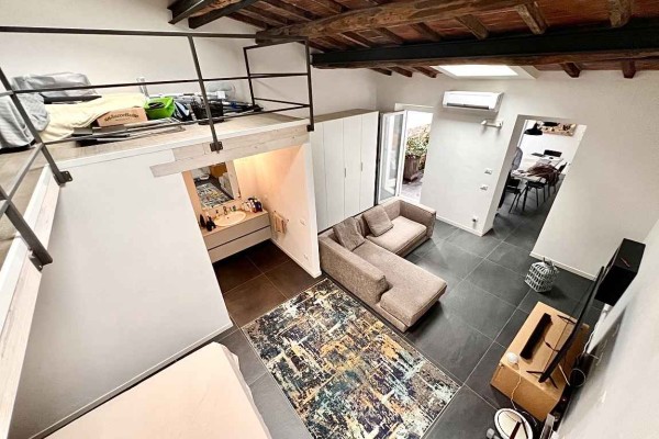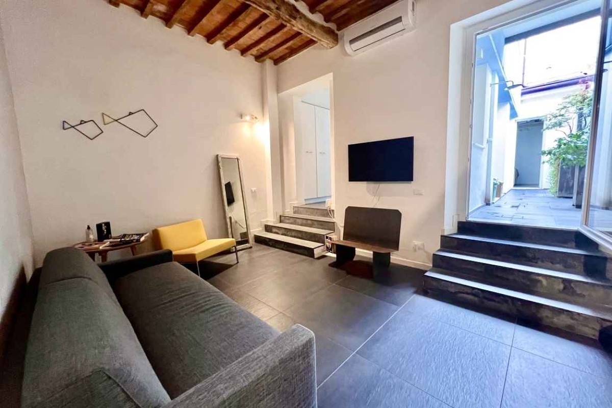Ai confini dell'area pedonale del centro storico di Pietrasanta, vendesi splendido loft disposto al piano terra di più ampia palazzina non condominiale composta da sole tre unità abitative. Il fabbricato è stato recentemente ristrutturato internamente ed esternamente e si presenta da subito abitabile, poiché venduto così come lo si vede, completo di elementi di arredo. Si compone da soggiorno, cucina con zona pranzo, bagno di servizio, ampio vano a vista con camera matrimoniale, soppalco e bagno privato. Quest'ultimo vano può essere suddiviso in due parti, per ricavare un secondo soggiorno o una seconda camera. A corredare la proprietà piccola corte esterna ad uso esclusivo con doccia e vano tecnico.