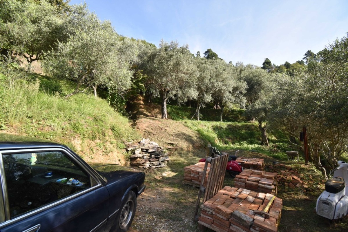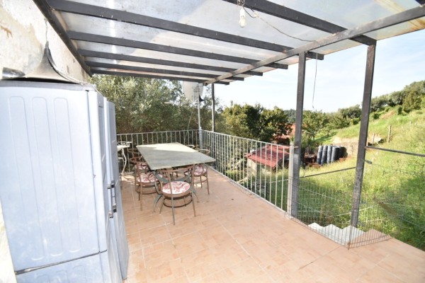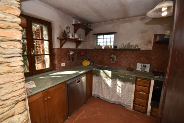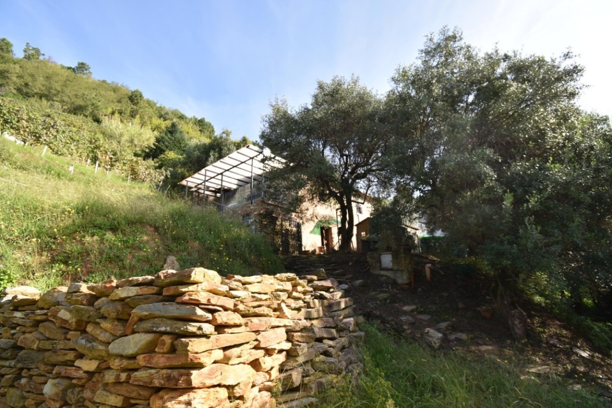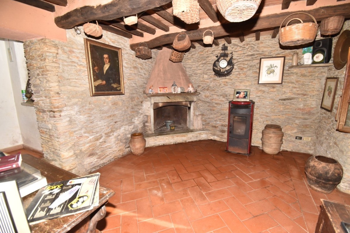 Per gli amanti della natura e della tranquillità vendesi ampia proprietà con abitazione principale rustica di circa mq. 135 e composta al piano terra da ingresso su salotto dove si trova un bellissimo camino del '600, cucinotto in muratura e storico lavabo in marmo, tinello abitabile; si accede al piano primo da scala (in pietra del Cardoso) dove si trovano due camere matrimoniali, bagno da finire e ampia terrazza abitabile con affacci su verdi oliveti.La casa ha bisogno di alcuni lavori di ristrutturazione, si raggiunge attualmente a piedi tramite breve percorso fra gli olivi (possibilità di ricavare la strada), è dotata di posto auto riservato.