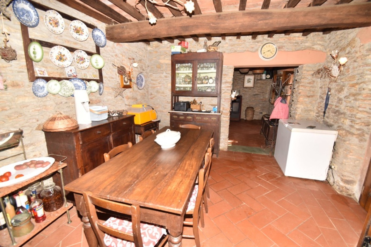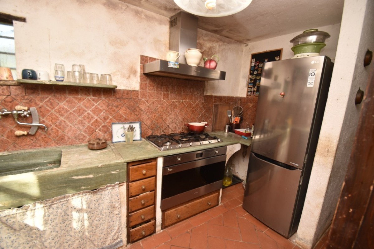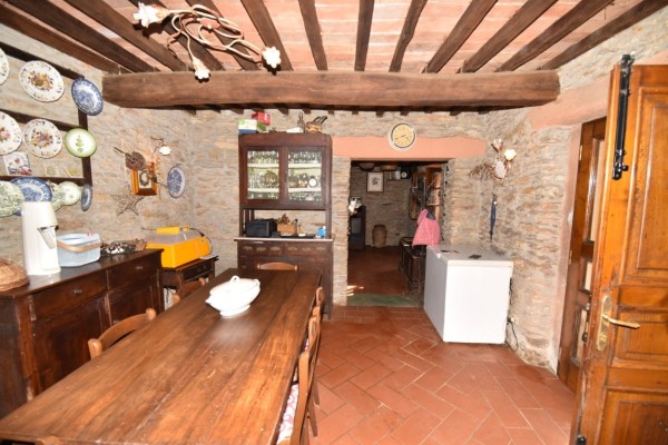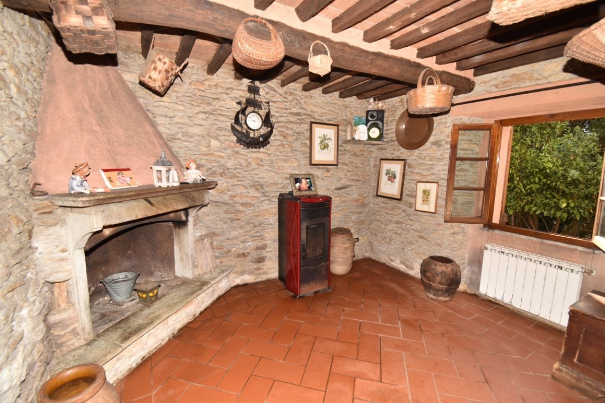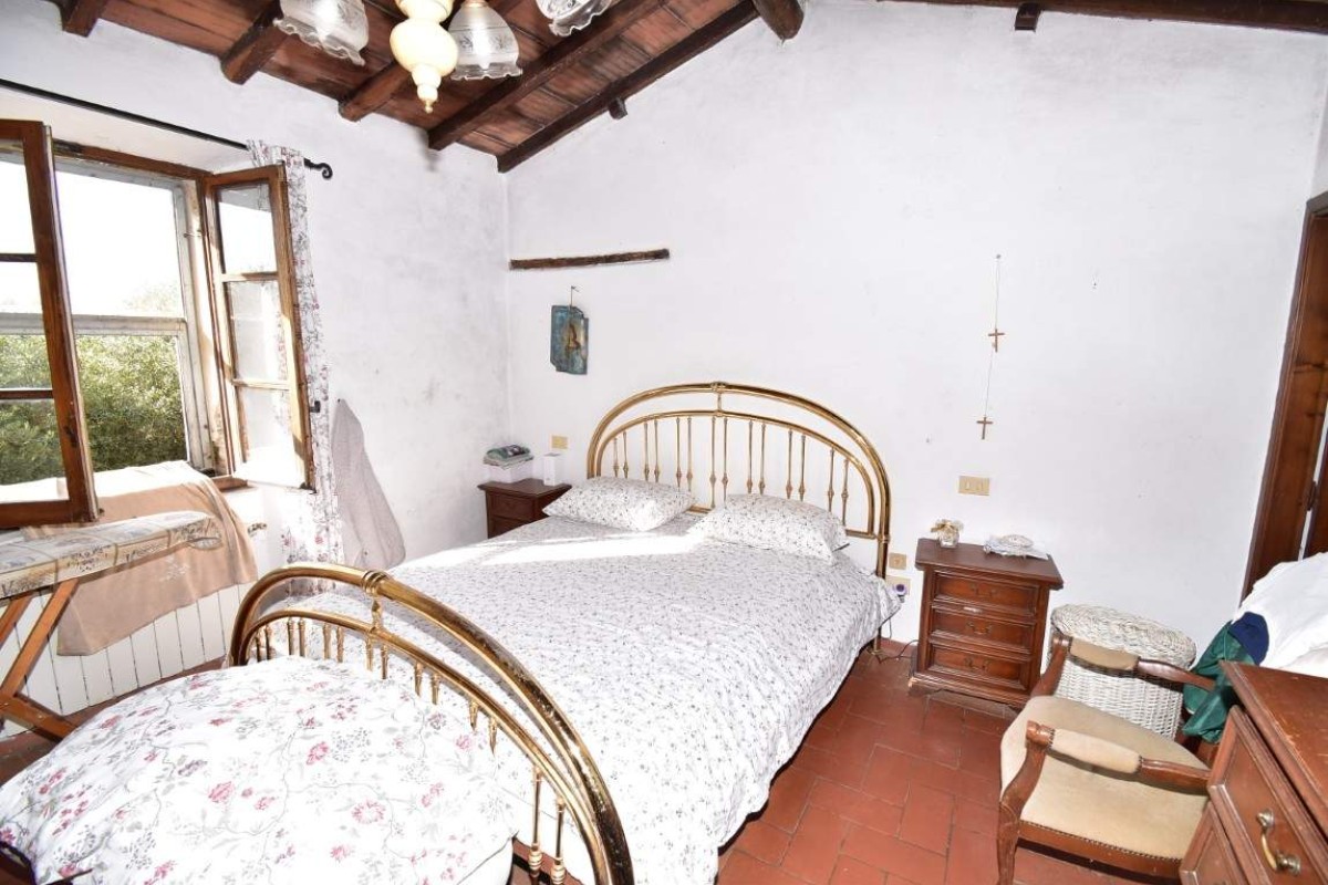 Per gli amanti della natura e della tranquillità vendesi ampia proprietà con abitazione principale rustica di circa mq. 135 e composta al piano terra da ingresso su salotto dove si trova un bellissimo camino del '600, cucinotto in muratura e storico lavabo in marmo, tinello abitabile; si accede al piano primo da scala (in pietra del Cardoso) dove si trovano due camere matrimoniali, bagno da finire e ampia terrazza abitabile con affacci su verdi oliveti.La casa ha bisogno di alcuni lavori di ristrutturazione, si raggiunge attualmente a piedi tramite breve percorso fra gli olivi (possibilità di ricavare la strada), è dotata di posto auto riservato.