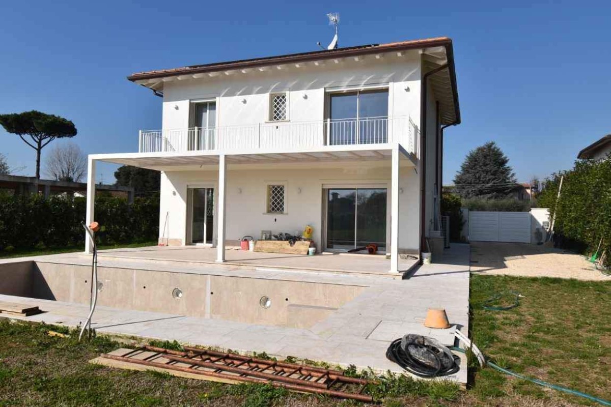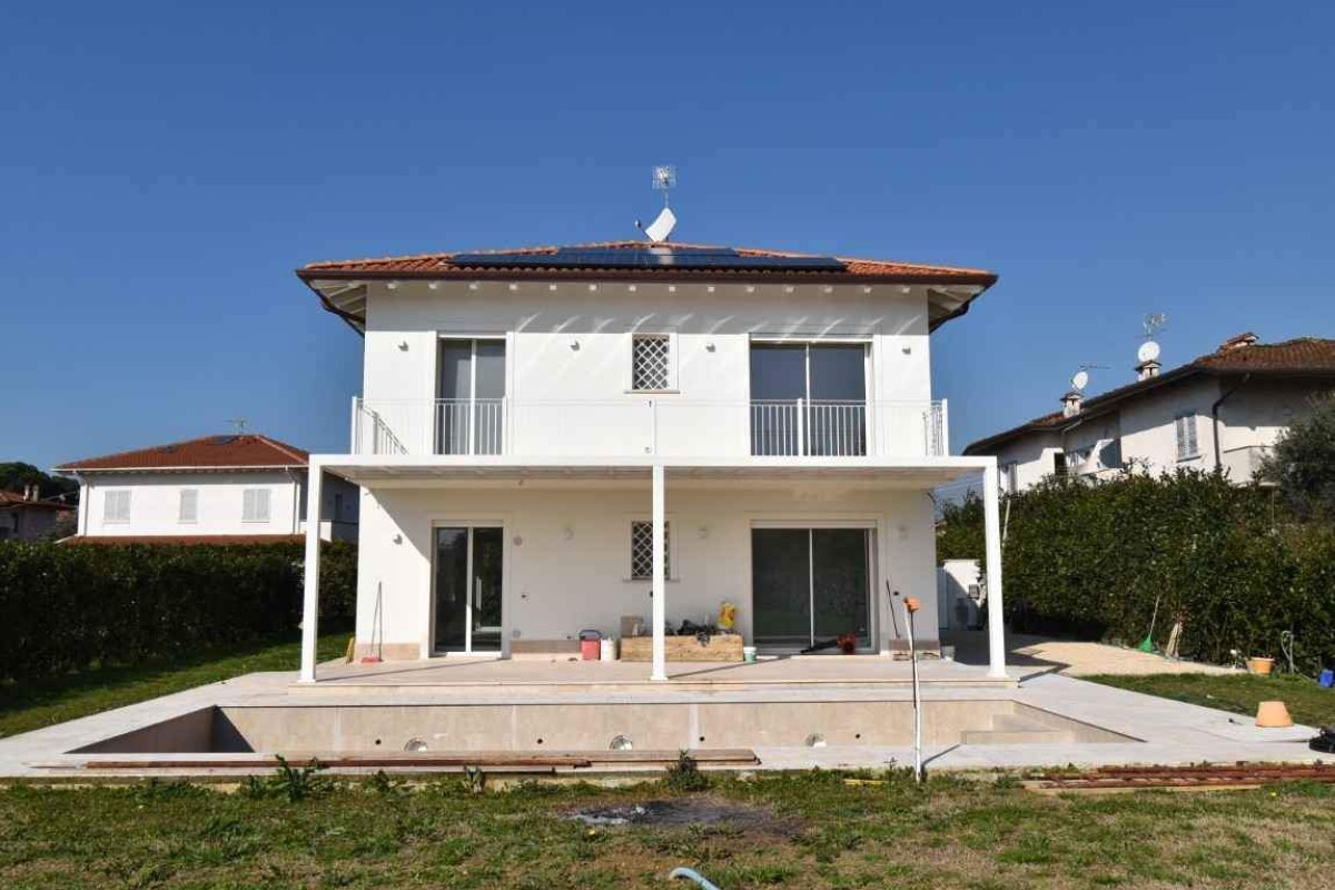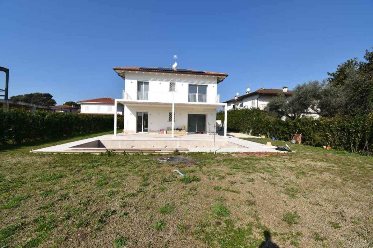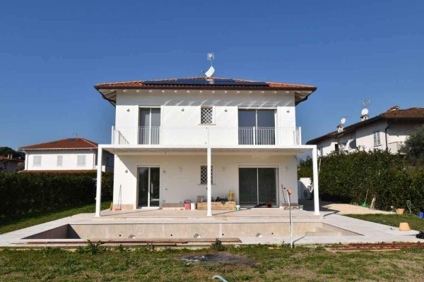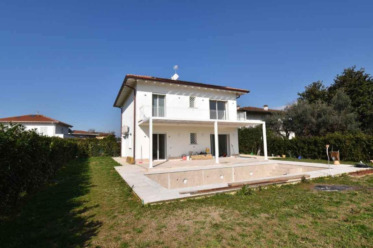 In zona soleggiatissima e residenziale a pochi passi dal centro storico di Pietrasanta, proponiamo villa singola di 200mq con piscina e 1600mq di terreno, l'immobile è di nuovissima generazione e internamente si presenta così articolato: ingresso su grande soggiorno luminosissimo, cucina abitabile con uscita su loggiato esterno, ideale per pranzi e cene estive con vista su piscina illuminata. Camera marimoniale con bagno privato, bagno a servizio ospiti.
