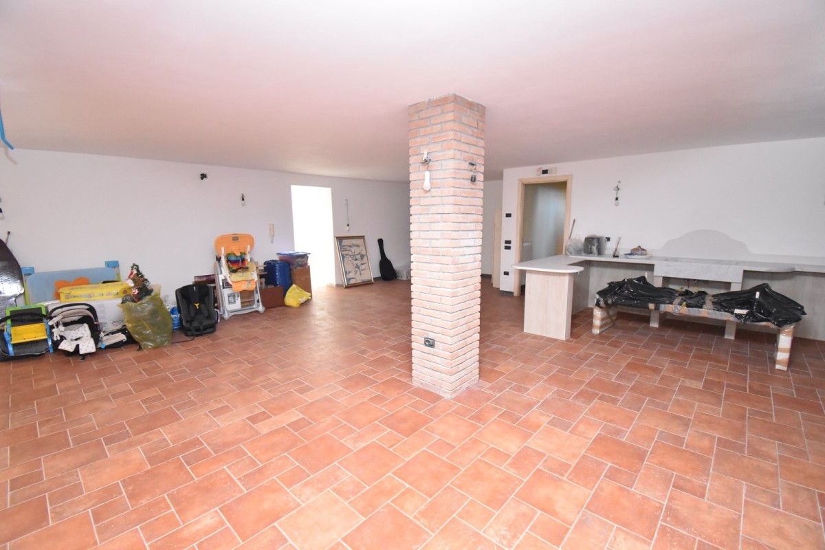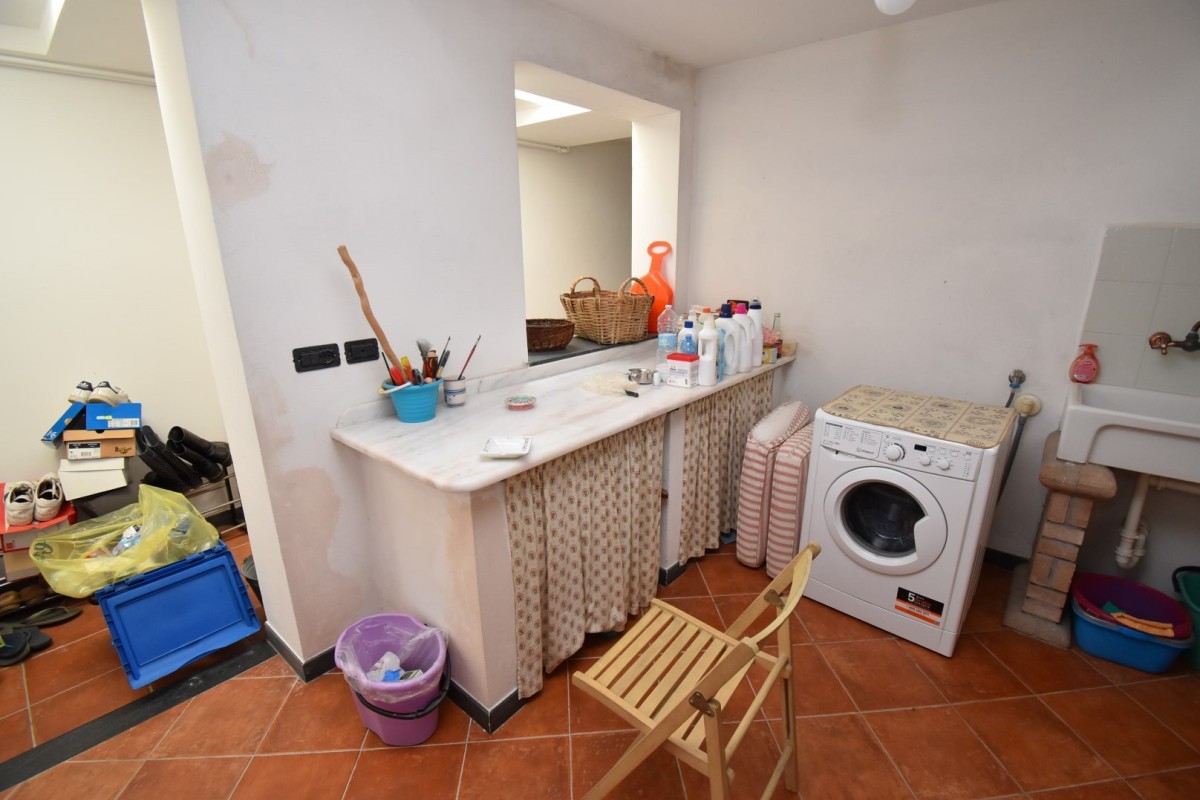 Al piano seminterrato finestrato e dotato di scannafosso, troviamo l'ampia taverna con angolo cottura e possibilità di realizzare camino, un bagno, vano lavanderia e vano dispensa.