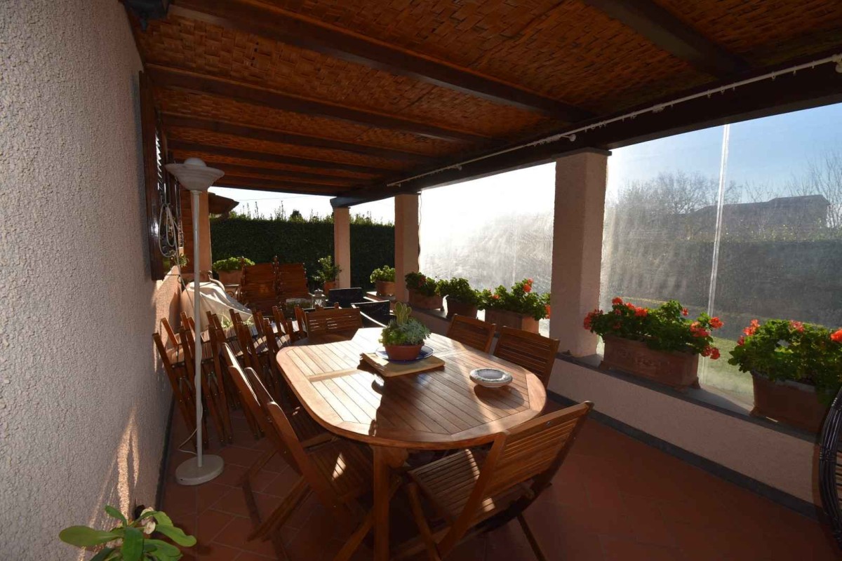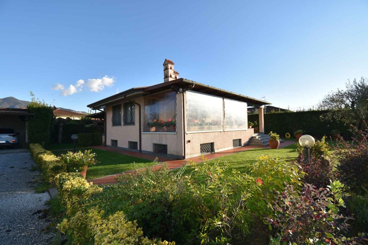 In aperta campagna con splendida vista sulle apuane, villa singola di ampia metratura con dependance: composta da taverna con camino, cucina, 2 camere e bagno, al piano terra con sviluppo su unico piano,ampio salone con camino, cucina-tinello, 3 camere e 3 bagni.