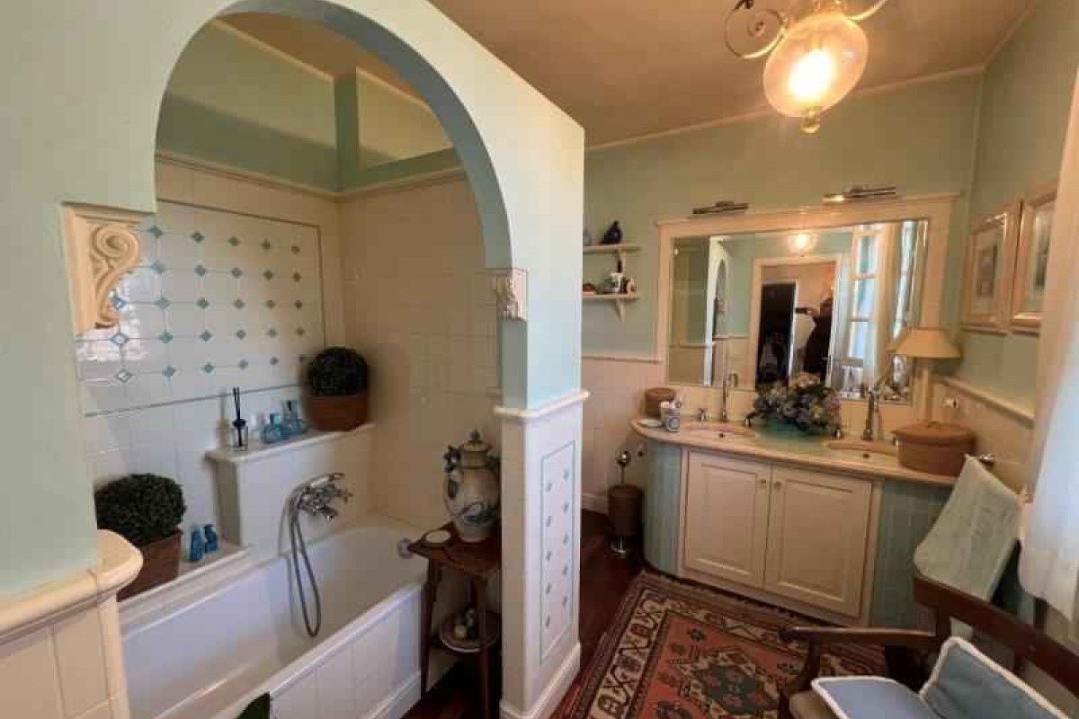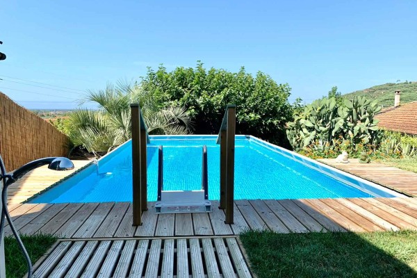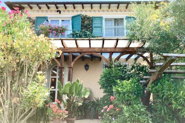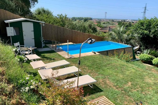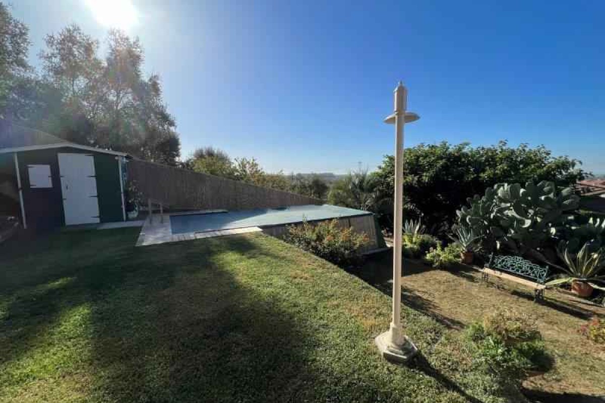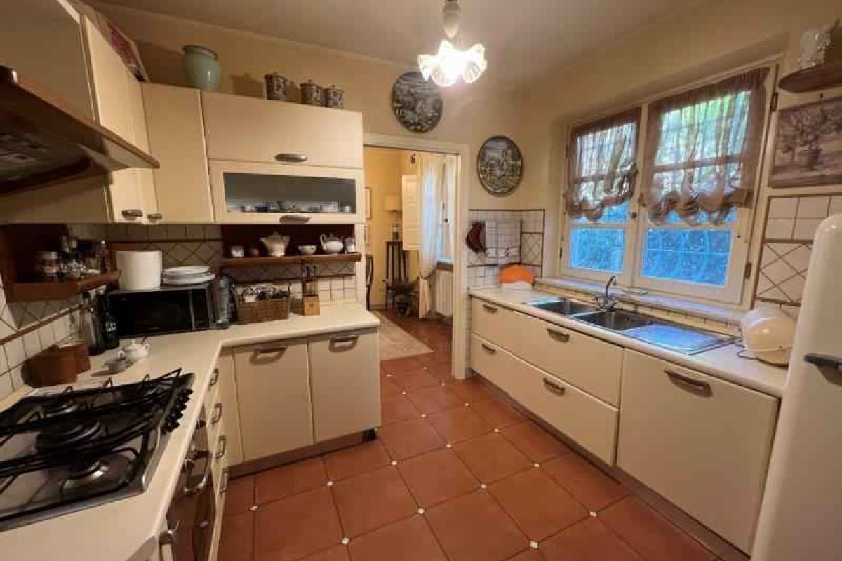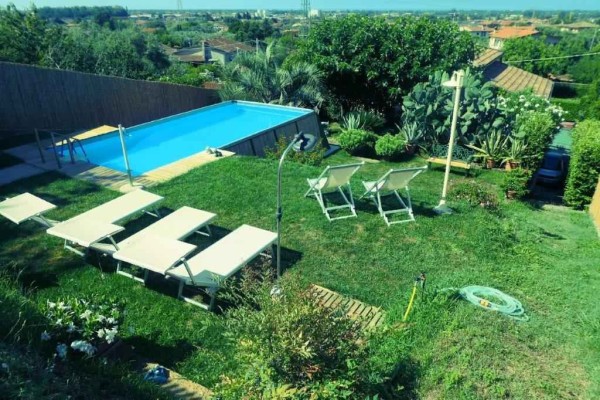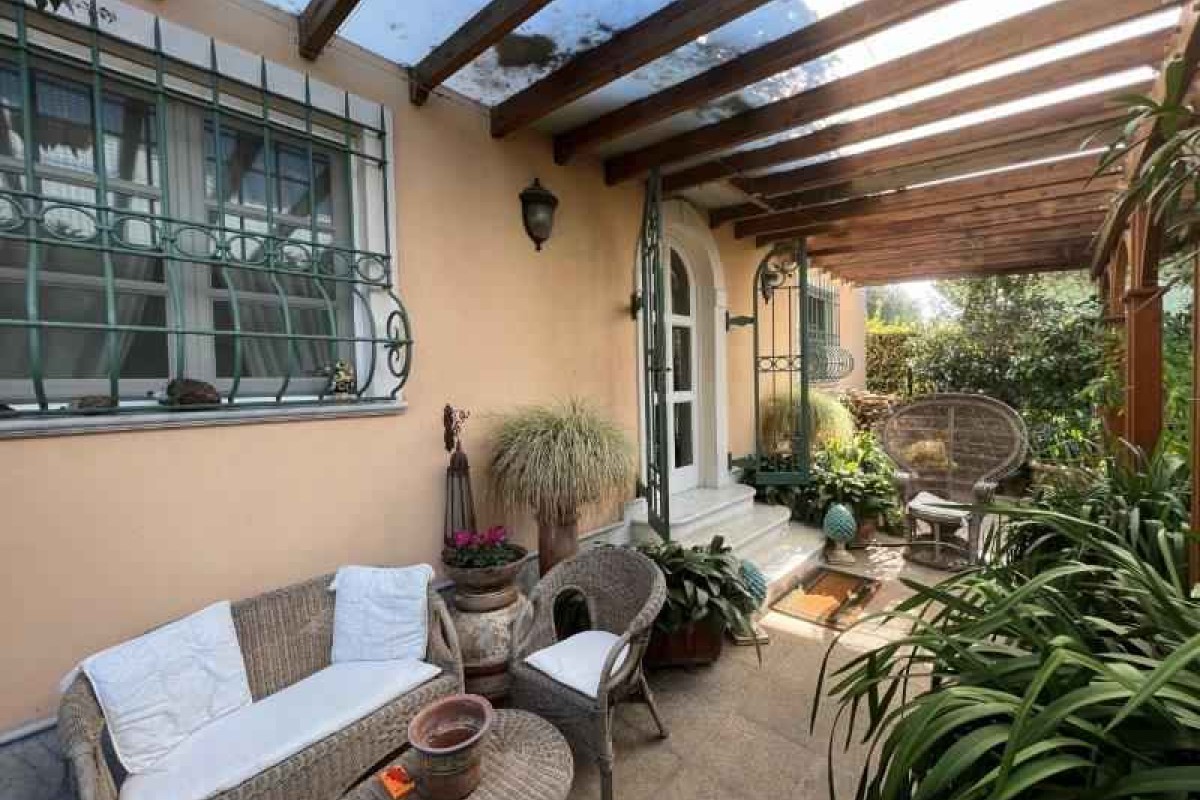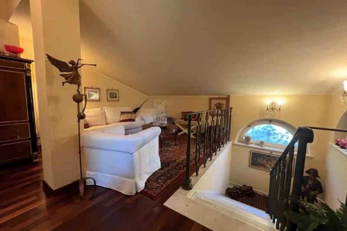 In zona vicino a tutti i servizi, villa singola di recente costruzione, usando materiali ricercati e di pregio, disposta al piano terra e piano primo, posti auto riservati, giardino sul retro dell'abitazione dove insiste piscina, zona solarium, terreno olivato e con piante da frutto oltre a piccolo orto e zona adatta per cene estive. L’immobile è composto al piano terra da porticato d'ingresso su sala con bel camino unico nel suo genere, zona pranzo-tinello, cucina abitabile, studio con uscita su spazio esterno coperto uso giardino invernale, bagno di servizio e disimpegno dal quale si accede alla zona esterna dove si trova una zona lavanderia e cantina; al piano primo si compone di 2 camere matrimoniali con bagno en suite di cui una con balcone, studio, 2 vani uso salotto piccolo disimpegno con uscita su terrazza di oltre mq. 20 e giardino.