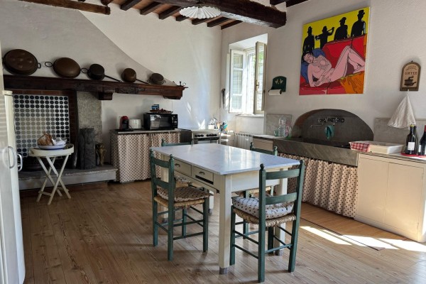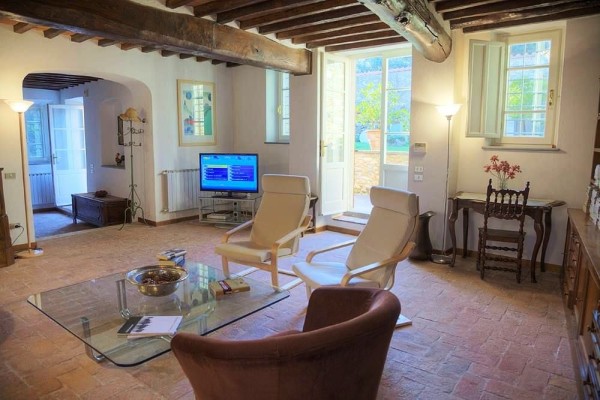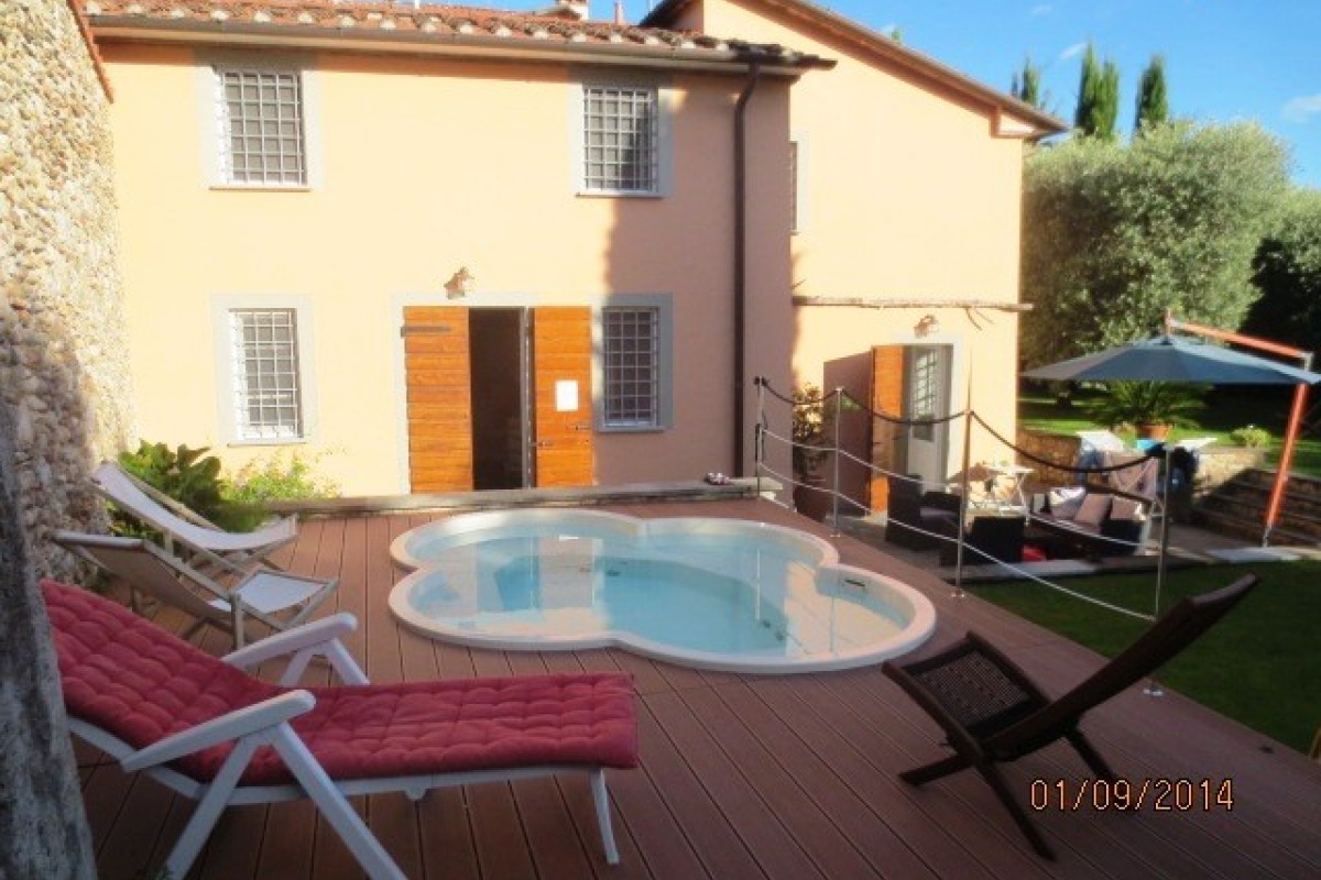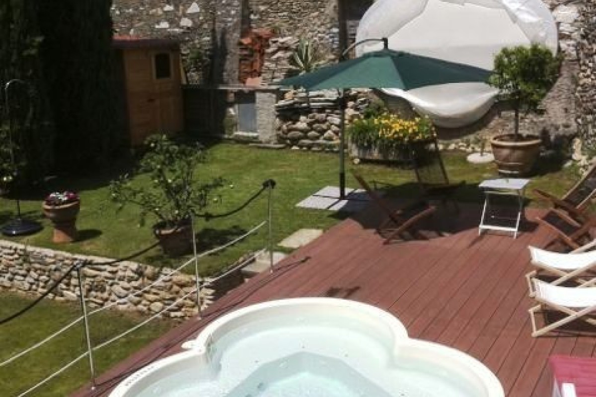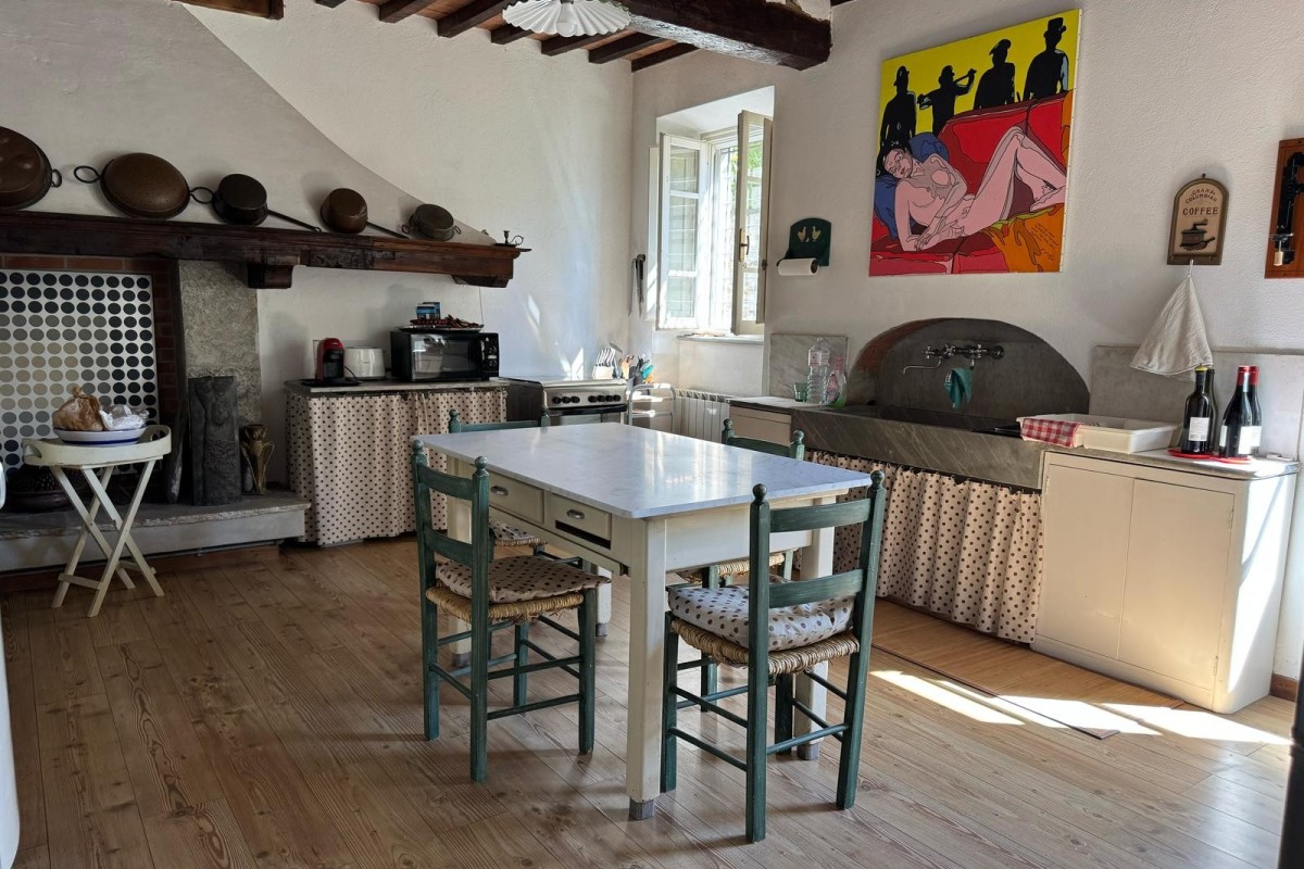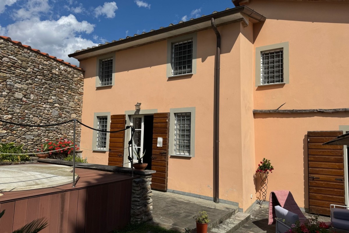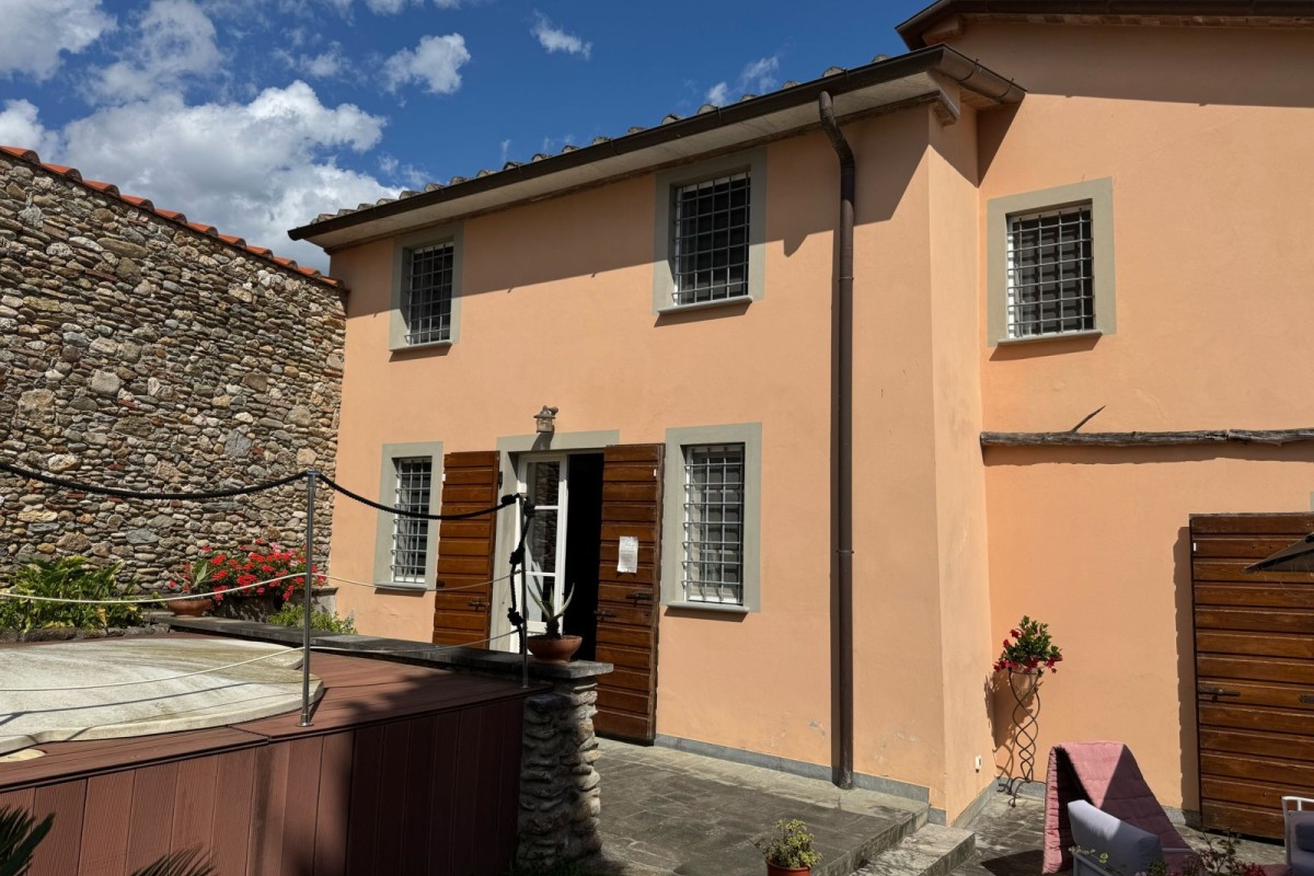 Immobile unico in vendita, garantito dalla privacy da muro antico in pietra,rustico semindipendente ristrutturato con gusto con bel giardino con piscina idromassaggio, doppio ingresso, composto al piano terra da ingresso-tinello, salone di mq. 40, cucina abitabile, bagno; al primo piano da 3 camere doppie ciascuna con bagno e camera singola.Classe energetica F: 177,0 kwh/m^2 annui.