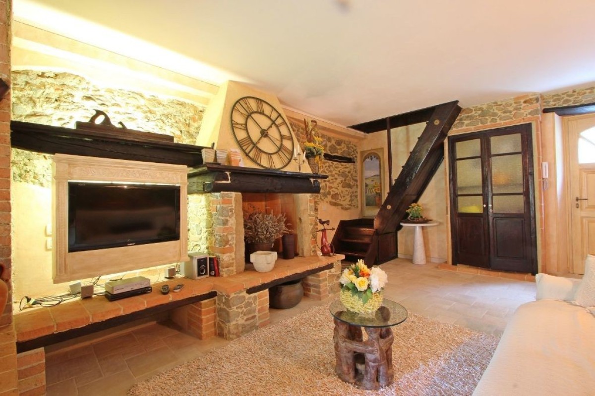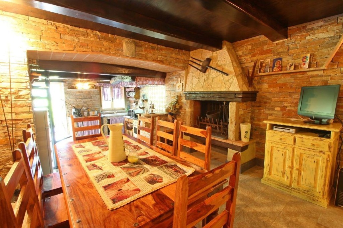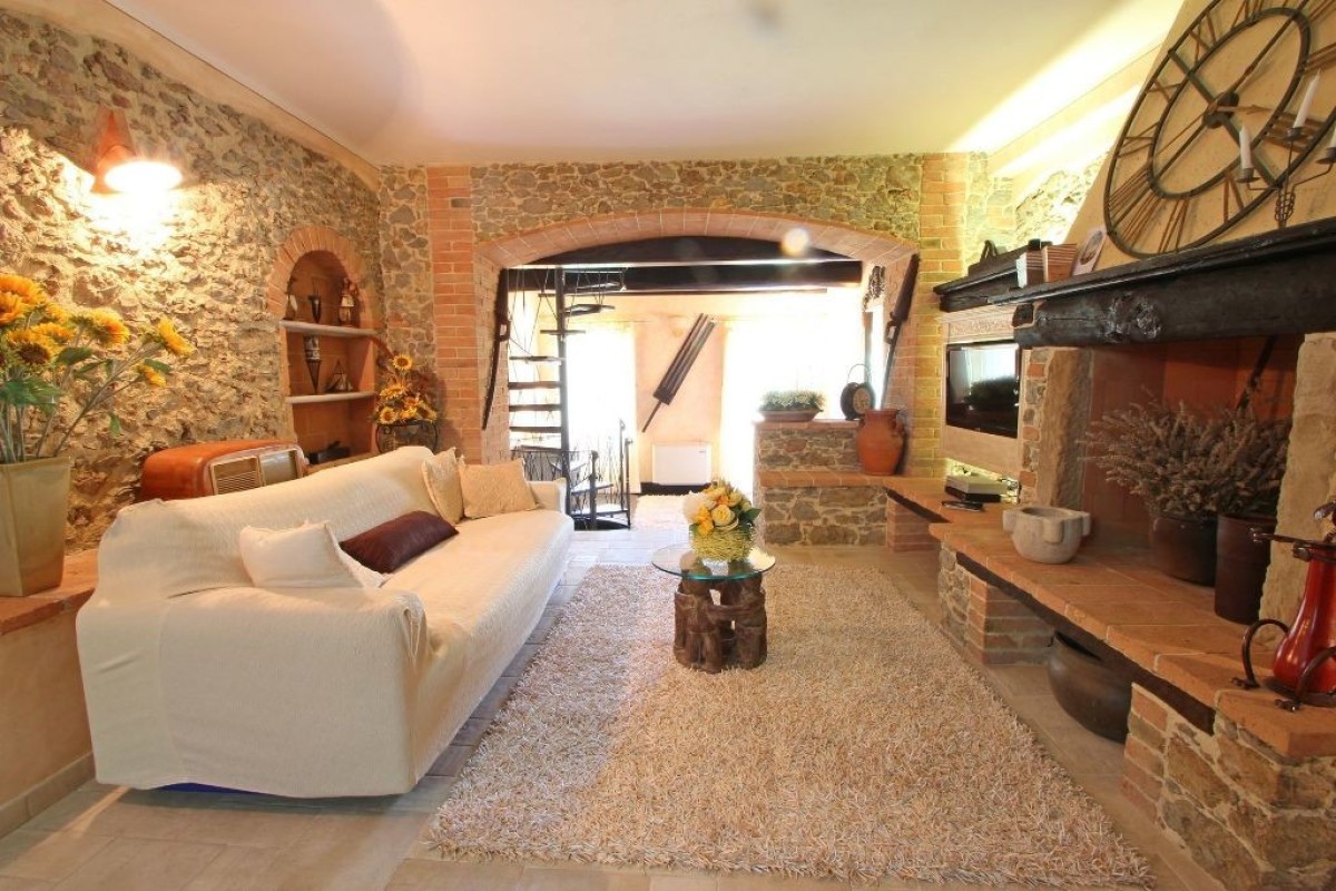 Immobile unico in vendita, garantito dalla privacy da muro antico in pietra,rustico semindipendente ristrutturato con gusto con bel giardino con piscina idromassaggio, doppio ingresso, composto al piano terra da ingresso-tinello, salone di mq. 40, cucina abitabile, bagno; al primo piano da 3 camere doppie ciascuna con bagno e camera singola. Classe energetica f: 177,0 kwh/m^2 annui.