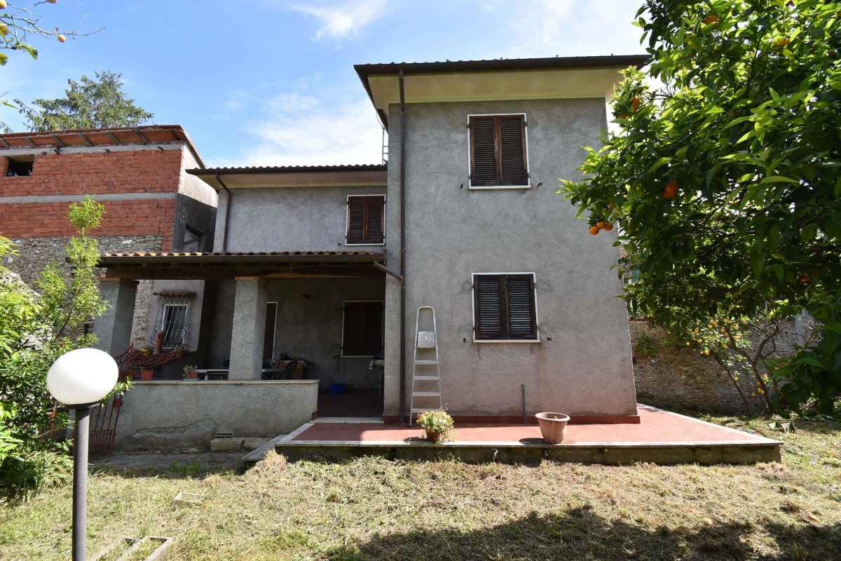 Il secondo edificio si tratta di una villa a schiera a due piani, si presenta in buono stato con grande portico attrezzato. La villa è composta al piano terra da: cucina, soggiorno, camera e bagno. Al piano superiore tre camere da letto ed un altro bagno.