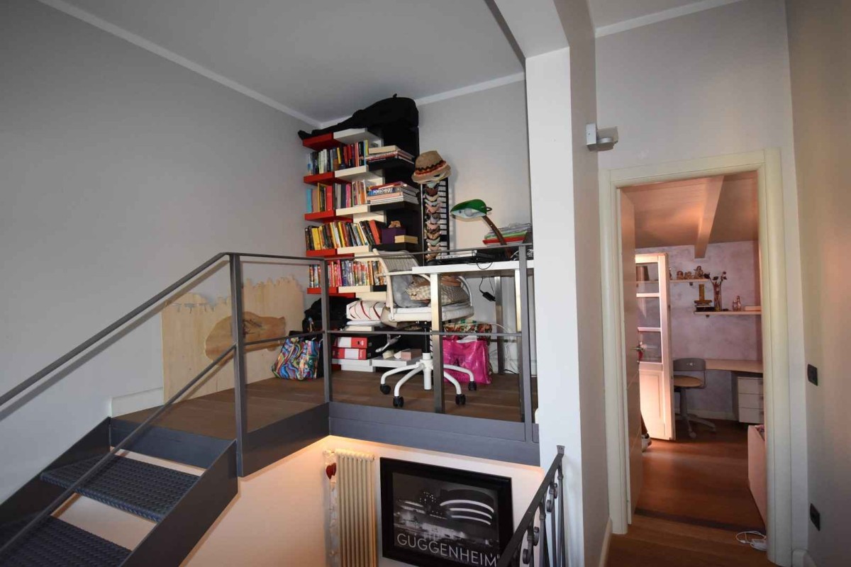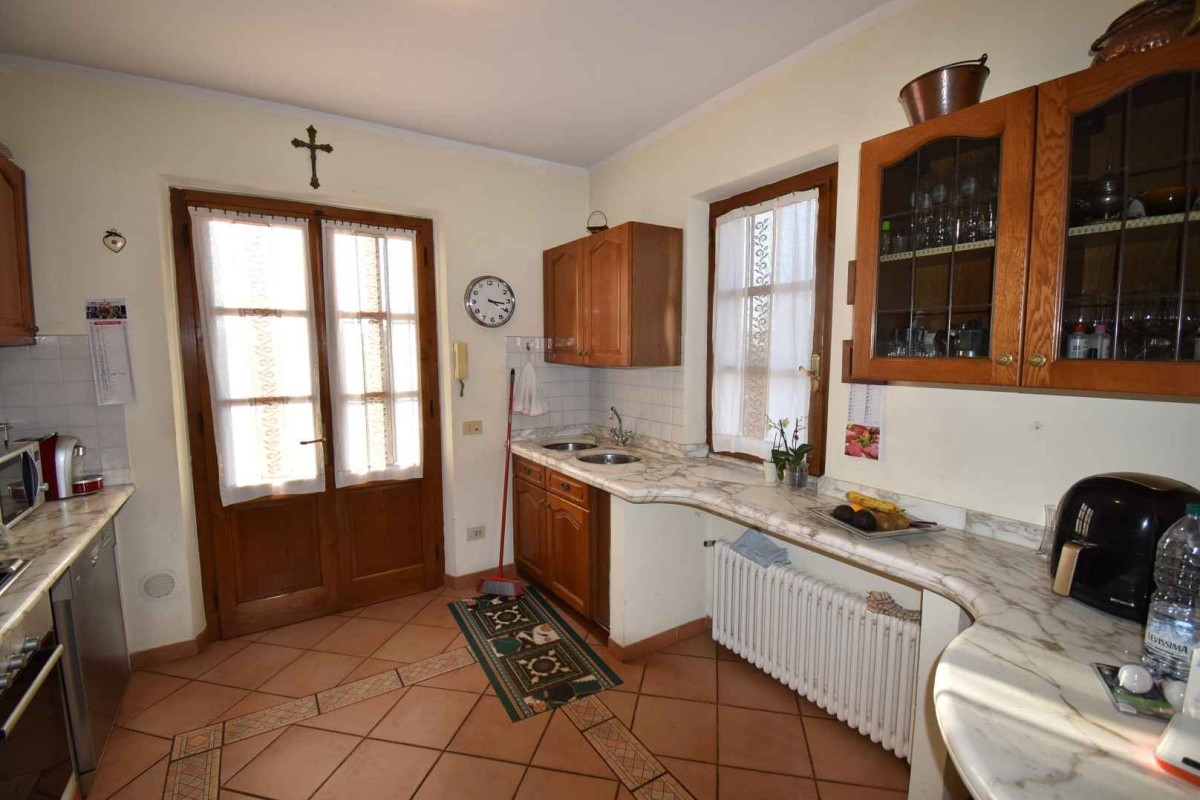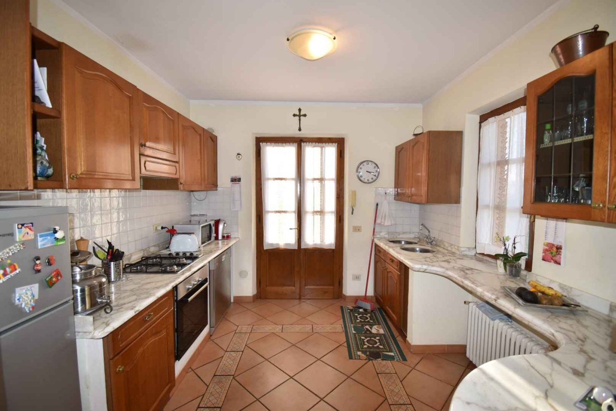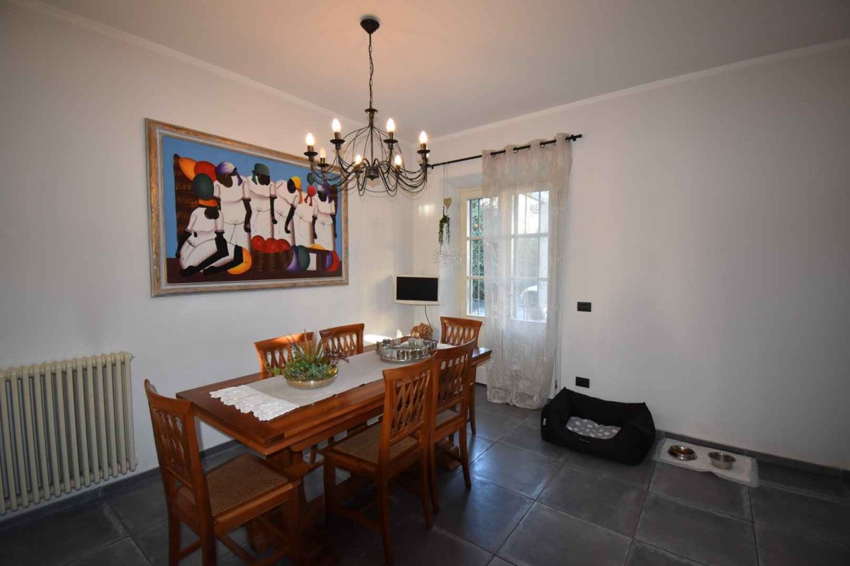 L'unità principale, di recente ristrutturazione, si sviluppa su due piani ed è internamente così composta: ingresso su vano scala, cucina abitabile con ampio tinello e uscita sul giardino attrezzato per il pranzo, bagno di servizio e vano ripostiglio-dispensa. Sempre al piano terra troviamo l'ampia zona giorno anch'essa con porta finestra sul giardino e camino funzionante. Al piano primo zona notte con una camera singola con terrazza soleggiata e bagno en suite, camera padronale, bagno a servizio del piano ed altra stanza attualmente utilizzata come stanza armadi ma nella quale è ricavabile una terza camera. Piano mezzanino piccolo studio.