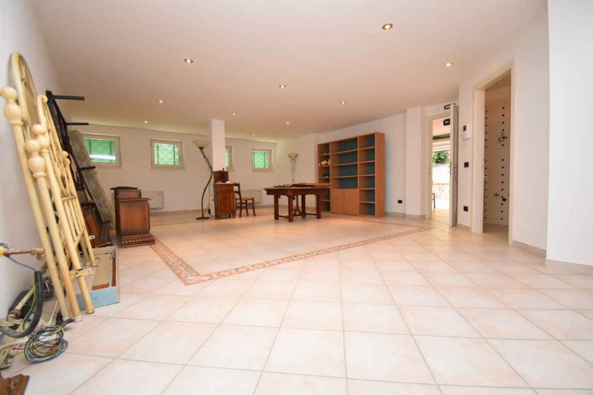 Ai piedi del monte di Ripa, in zona residenziale e tranquilla, comoda rispetto a tutti i servizi, proponiamo in vendita splendida villa da subito abitabile disposta su unico piano oltre il piano seminterrato. Trattasi di una costruzione abbastanza recente che gode di ottime rifiniture e materiali di pregio. Internamente così composta: ampio e luminoso soggiorno pranzo con camino, cucina abitabile con uscita sull'esterno, disimpegno sulla zona notte, tre camere di cui due matrimoniali ed una singola, tutte dotate di uscita su giardino e due bagni, uno con box doccia ed uno con vasca idromassaggio. Al piano seminterrato, con accesso sia da vano scala interno sia da portone garage sezionale automatico si trovano il vano tecnico, l'angolo lavanderia, una piccolo servizio, un'ampia taverna con allacci per creare una secondo angolo cottura, l'area parcheggio interna ed un bagno con doccia. A corredare l'immobile il giardino di proprietà esclusiva, ingresso carrabile con posti auto scoperti, garage, porticato vivibile, doccia esterna, pannelli solari, aria condizionata, ottime rifiniture e materiali di pregio.