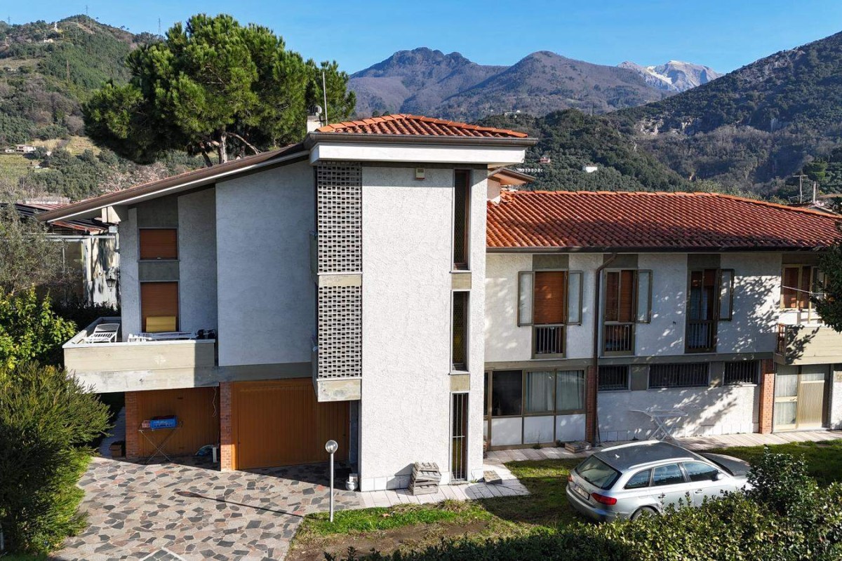 Proponiamo in vendita splendida villa anni 70 monofamiliare, libera su quattro lati e disposta su più livelli sfalsati per un totale di 350 mq. Internamente composta al piano terra da soggiorno, cucina, zona pranzo, zona lavanderia, stanza studio, vano ripostiglio, un bagno ed accesso alla cantina. Al piano primo ampia zona living con camino centrale, sala da pranzo, cucina abitabile, due camere matrimoniali di cui una con terrazza, due camere singole, due bagni (uno con box doccia ed uno con vasca), vano ripostiglio. Dalla splendida scala in marmo posta in soggiorno si accede al piano superiore con soppalco a vista. Qui troviamo un piccolo salottino, una camera matrimoniale ed un bagno.