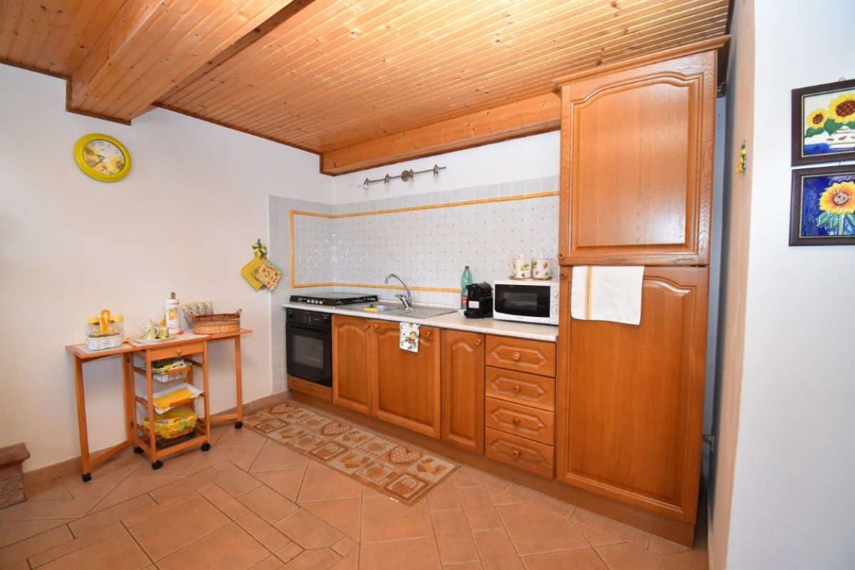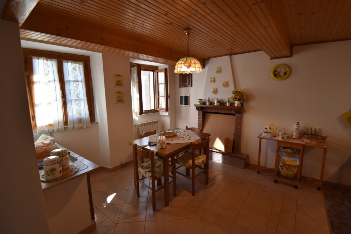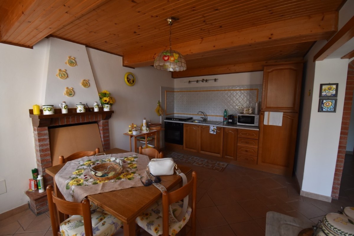 Terratetto nel paese di circa mq. 60 composto al piano terra da saletta, bagno, cantina; al piano primo cucina-soggiorno e al piano secondo camera matrimoniale, camera singola.