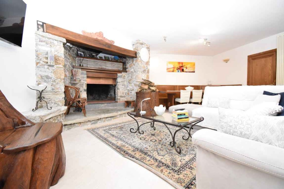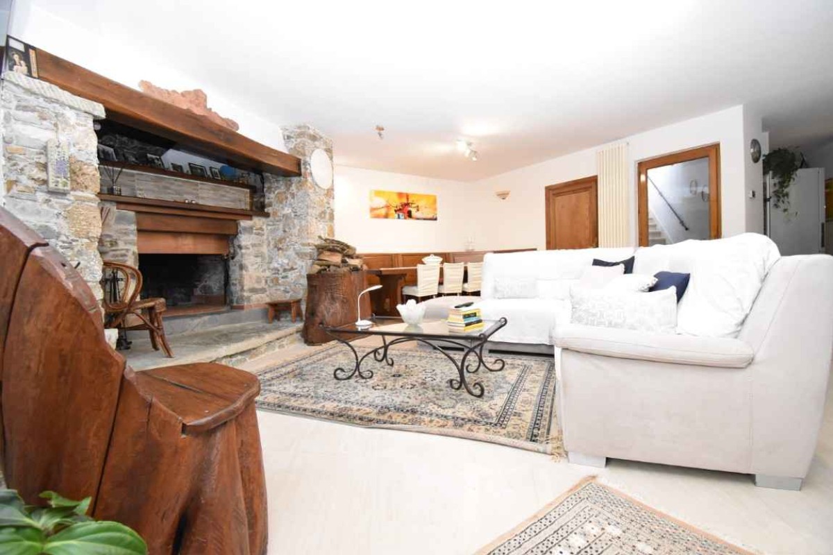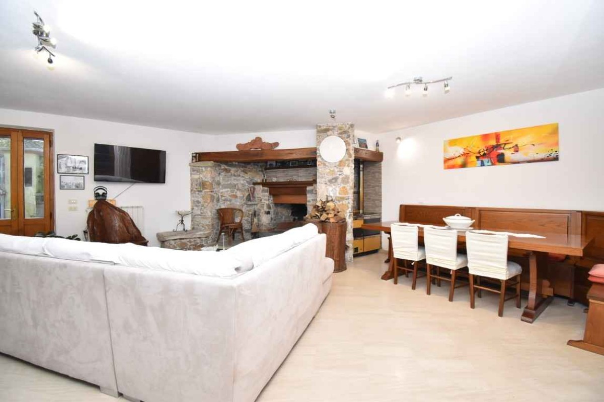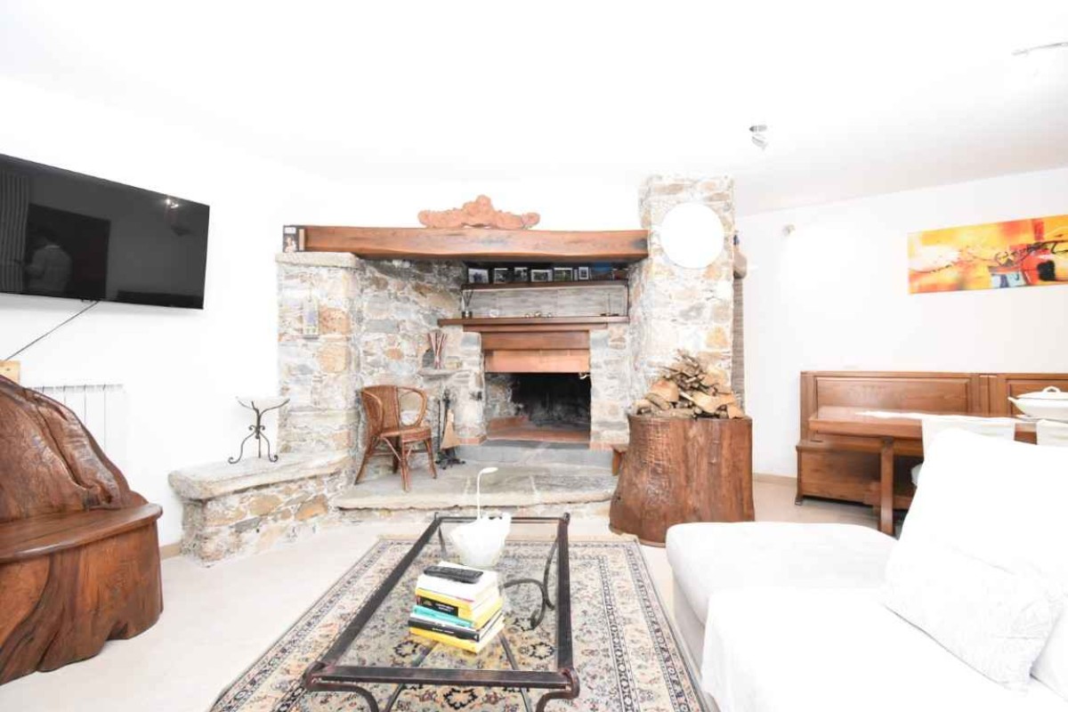 La villa si dispone su tre livelli di cui uno, seminterrato e due fuori terra. Al piano seminterrato, con accesso dall'esterno, troviamo un'ampio salone con splendido camino in sasso, angolo cottura, disimpegno, una camera ed un bagno oltre vano ripostiglio nel sottoscala.