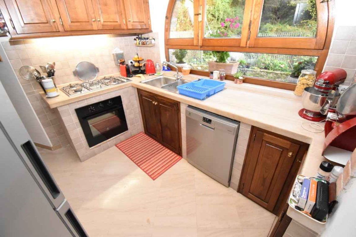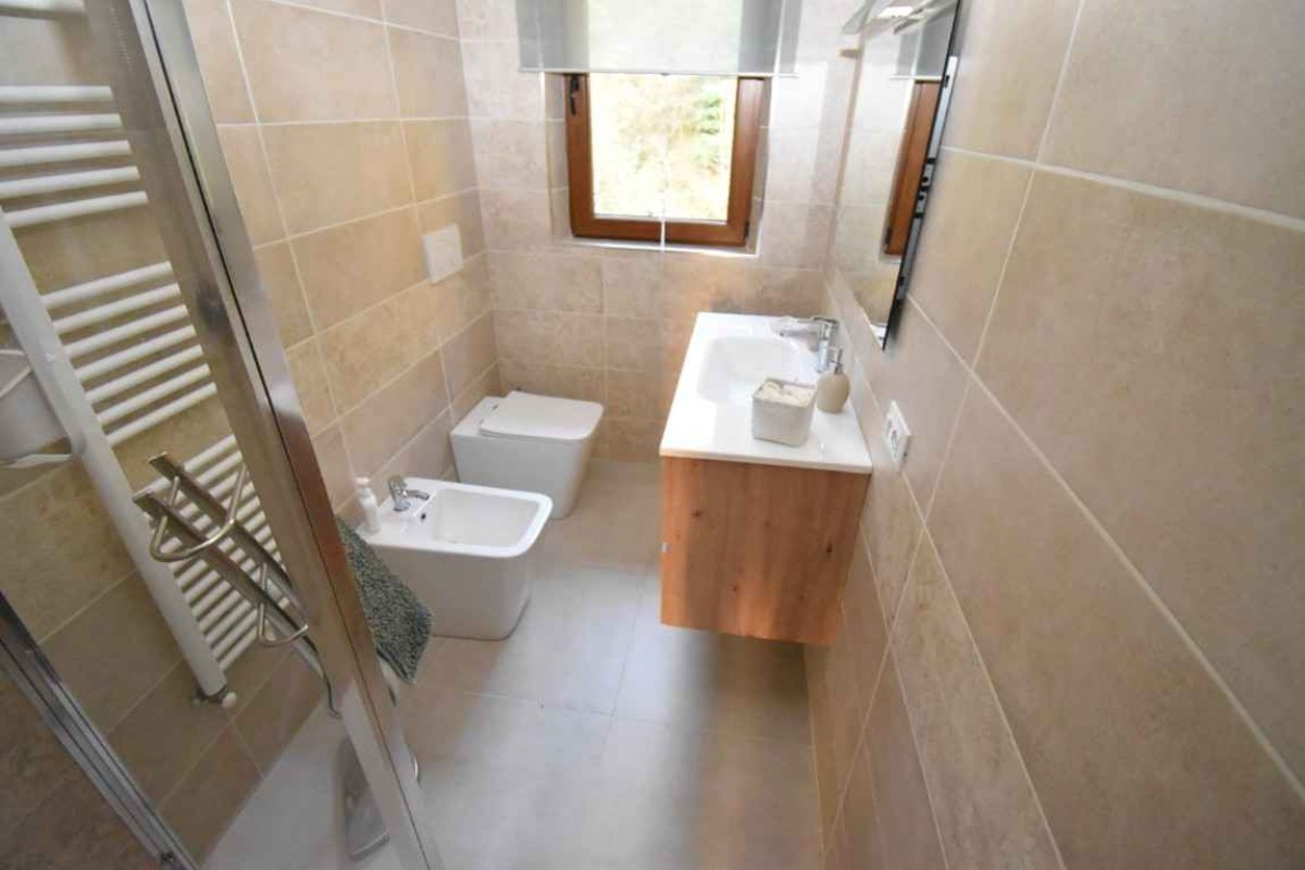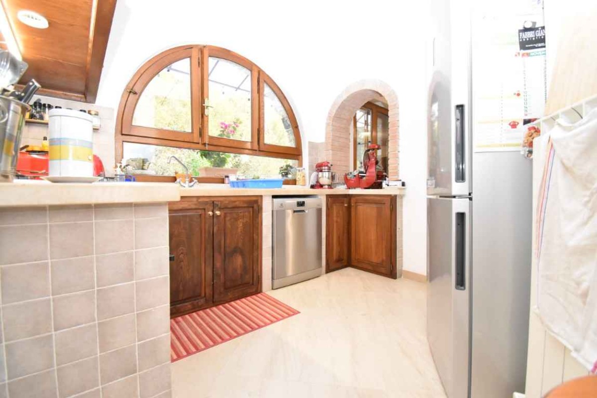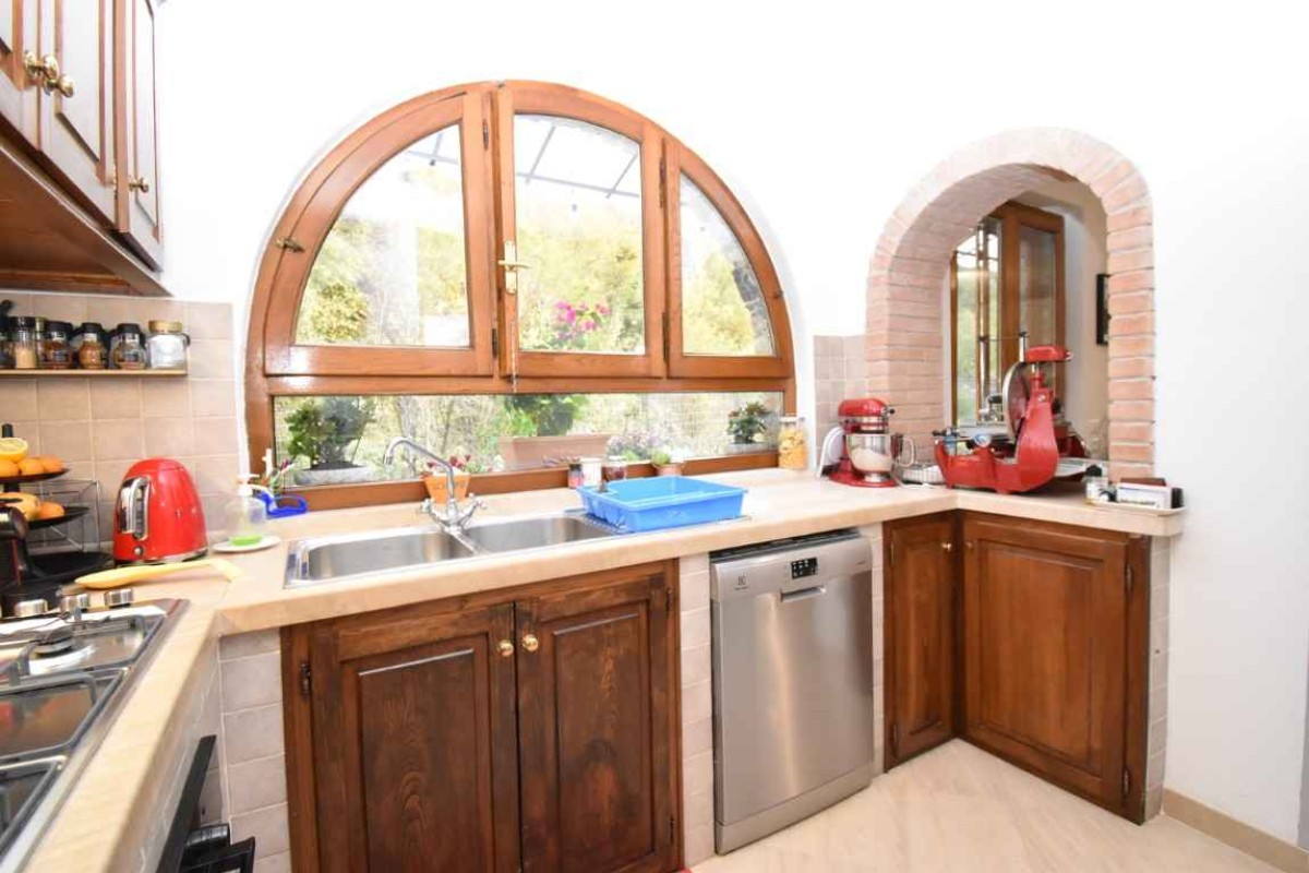 La villa si dispone su tre livelli di cui uno, seminterrato e due fuori terra. Al piano seminterrato, con accesso dall'esterno, troviamo un'ampio salone con splendido camino in sasso, angolo cottura, disimpegno, una camera ed un bagno oltre vano ripostiglio nel sottoscala.