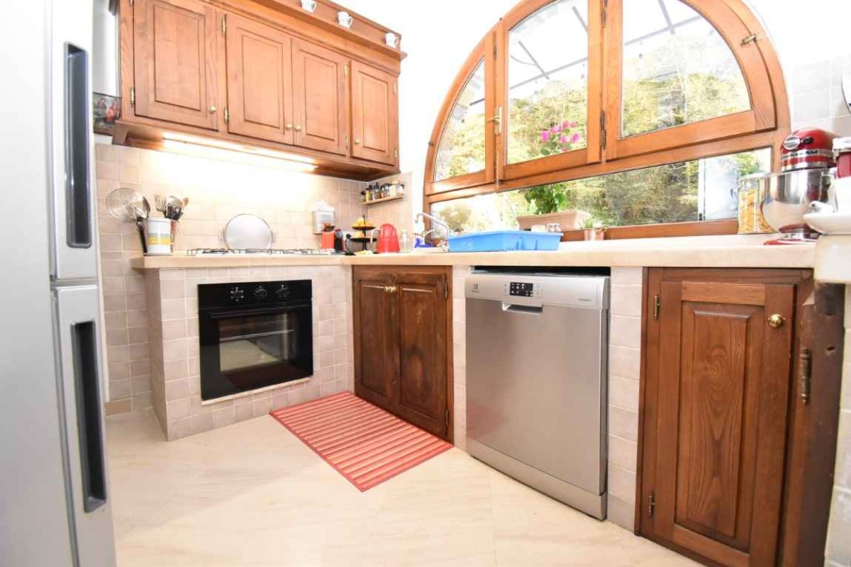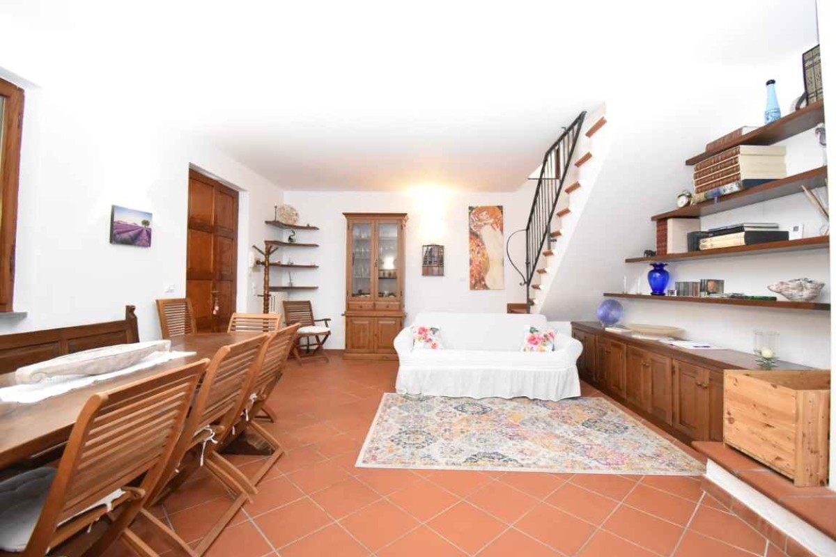 Doppia scala per eccedere al piano superiore, dove ad accoglierci sarà un'amplia terrazza vivibile, circondata dalla natura, attrezzata per pranzi e cene all'aria aperta. A questo piano troviamo un secondo soggiorno con termocamino, angolo cottura e vano scala. Al piano superiore due ampie camere matrimoniali ed un bagno completo.